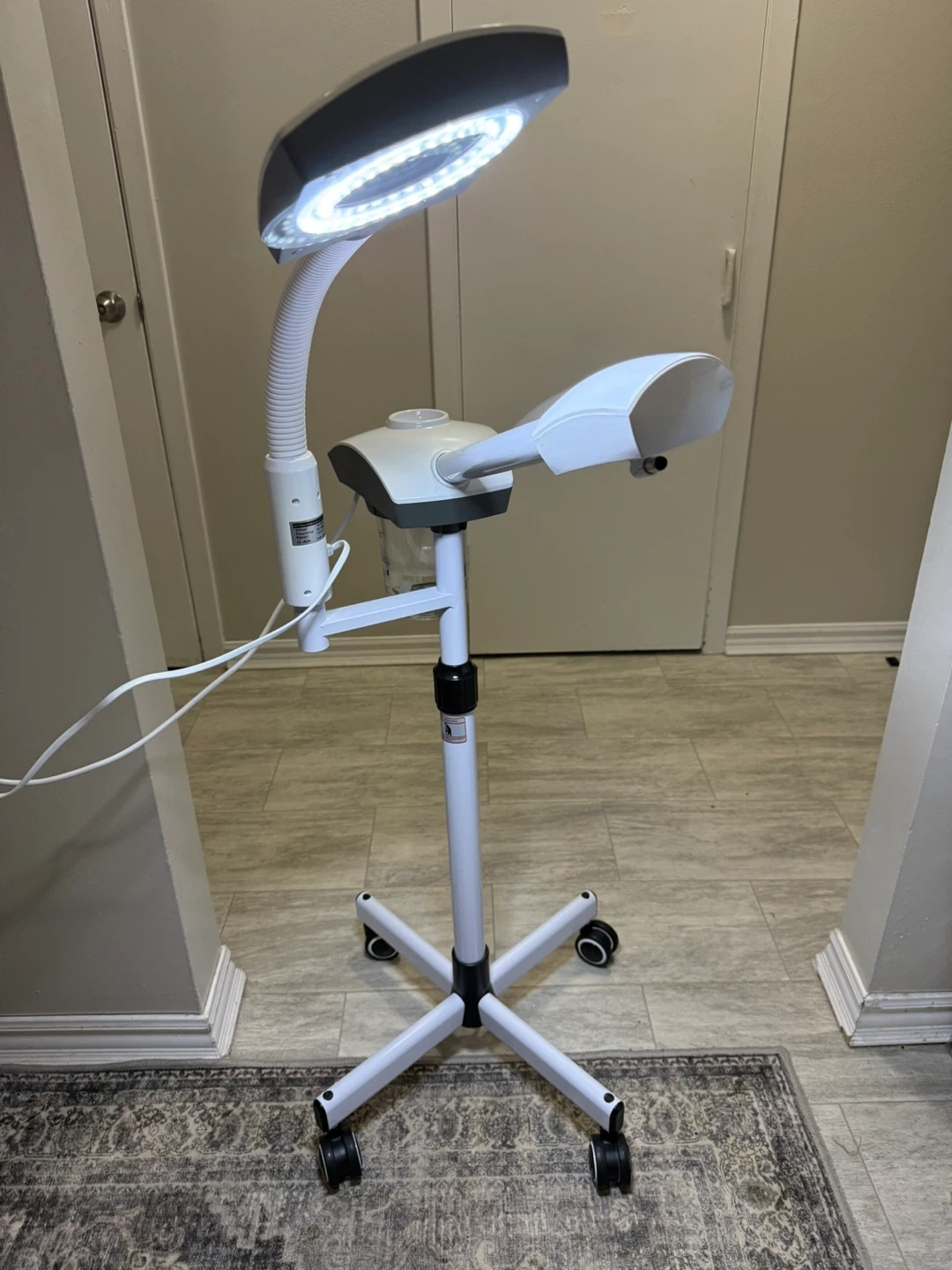 138NEW Pro 2-in-1 Facial Steamer, Magnifying Lamp Description: New and is assembled and ready for use, includes instruction manual. Key Features: 60-Min Timer & Dual Steam Levels Advanced Nano Ionic Steam with Optimized Steam Quality 360° Swivel Nozzle & Large 650ml Tank 33" to 44" height adjustment Precision Magnification & Adjustable LED Lighting Corded Electric $120 — 102025