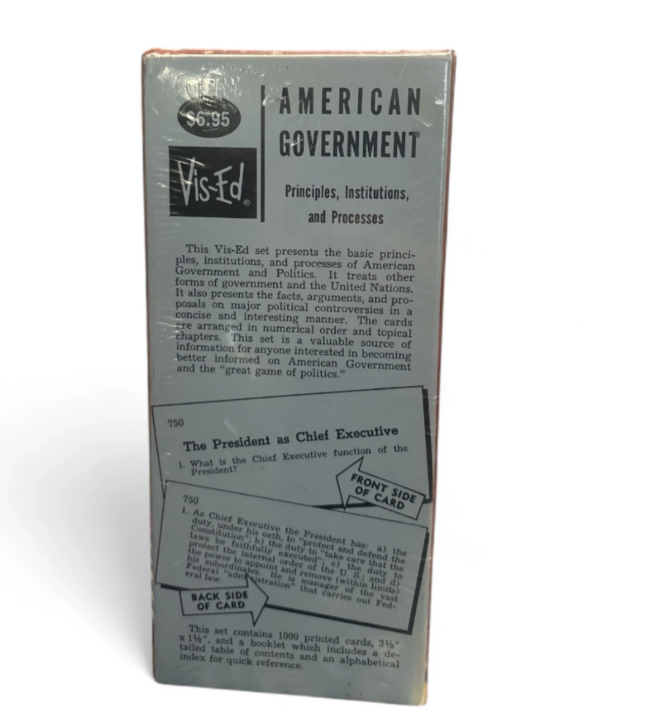 I'm selling a set of Vis-Ed American Government Summary Cards. This set outlines basic facts and concepts of American Government and political theory for easy study. This set contains 1000 printed cards, 3½" x 1½", and a booklet including a detailed table of contents and an alphabetical index for quick reference