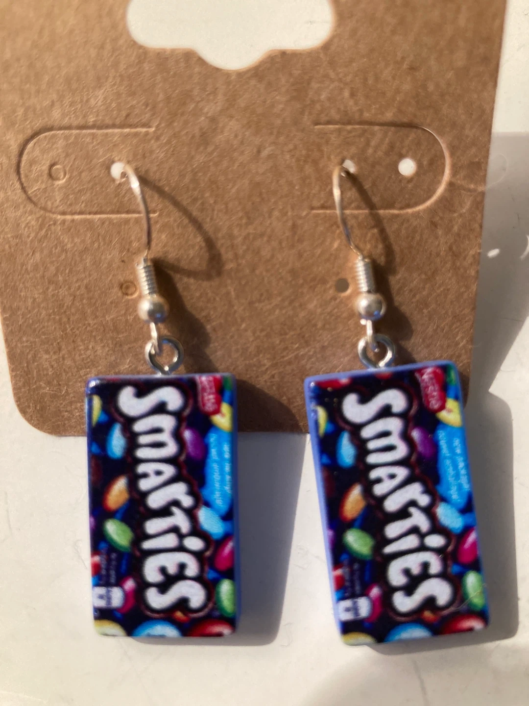 186These earrings are super fun and unique! They feature a Smarties candy box design. Perfect for anyone who loves a little bit of whimsy in their accessories Sterling Silver posts