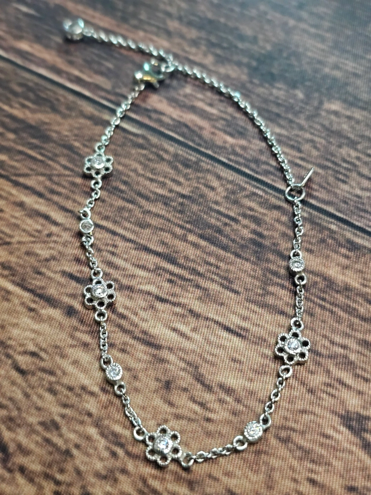 1000+Selling a pretty silver bracelet with flower and rhinestone details! It's in great condition and has a delicate, feminine look. The bracelet is adjustable, so it should fit most wrists comfortably. Perfect for adding a touch of sparkle to any outfit