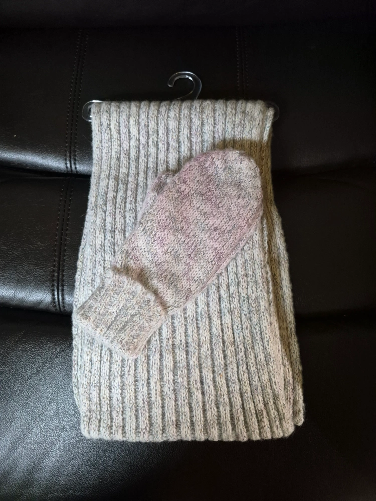 44Soft, warm, and perfect for chilly days! This beautiful knit scarf and mitten set has never been used. Neutral beige-grey tones match easily with any winter coat. Excellent condition — clean and ready to wear. ✅ Brand new, never worn ✅ Soft knit material ✅ Neutral color, unisex style ✅ Smoke-free, pet-free home