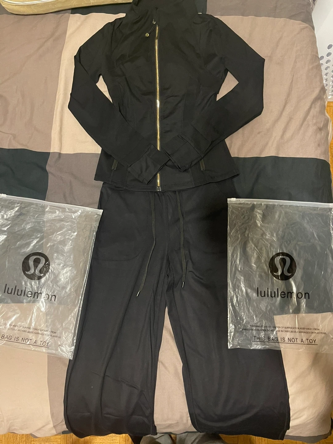 23Selling a Lululemon outfit! Includes a jacket and pants, both in black. The items are in great condition and come in the original Lululemon bags.