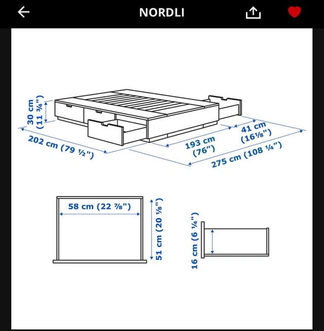 IKEA Nordli King Bed frame with storage drawers