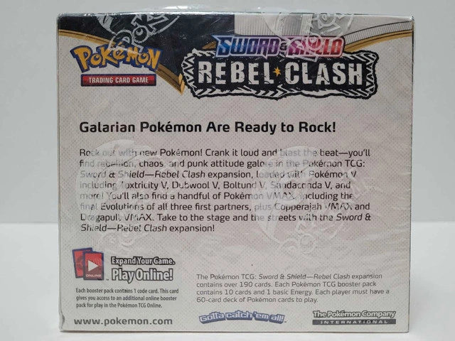 10NEW SEALED RARE ORIGINAL PRINT Includes: Sword and Shield _ Rebel Clash expansion contains over 190 cards. Each Pokémon TCG booster pack contains: 10 cards and 1 basic energy 1 code card. I will only reply and meet Sunday to Friday. I will do combo deals with my other listings, so check them out. Thanks!