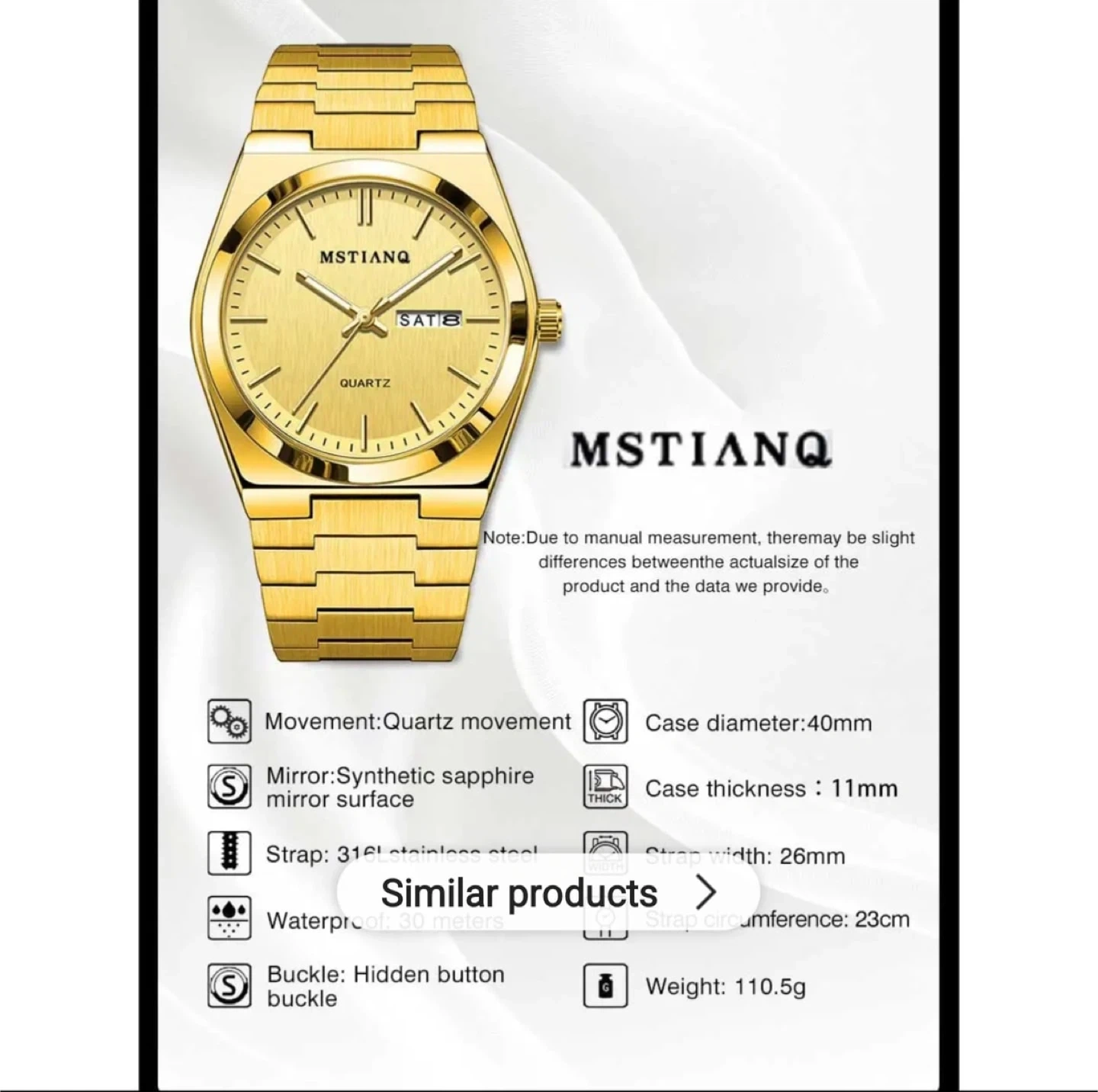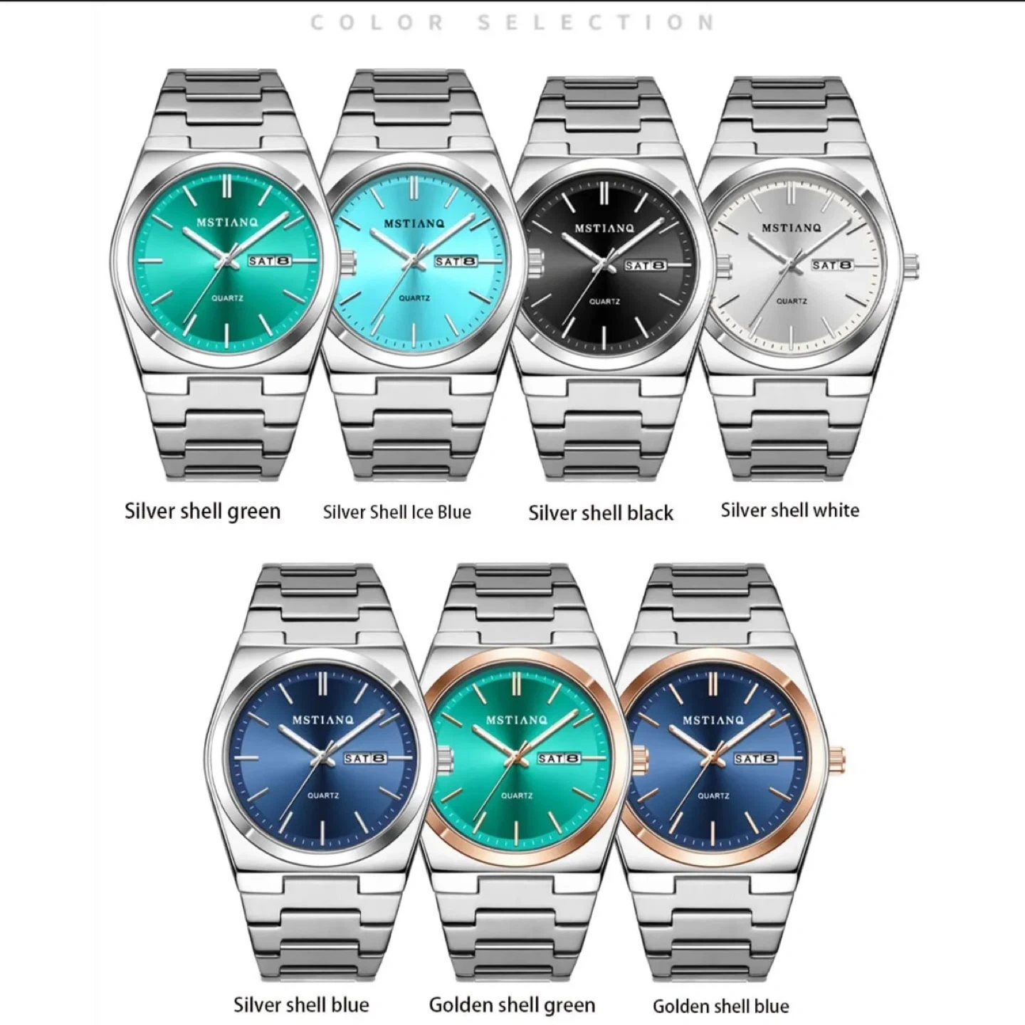 This MSTIANQ watch is perfect for daily life, with 30M waterproof protection. It features a stainless steel band that's both rugged and comfortable. The mineral reinforced glass is scratch resistant, and the HD luminous display makes it easy to read at night. It also has a double press butterfly buckle design