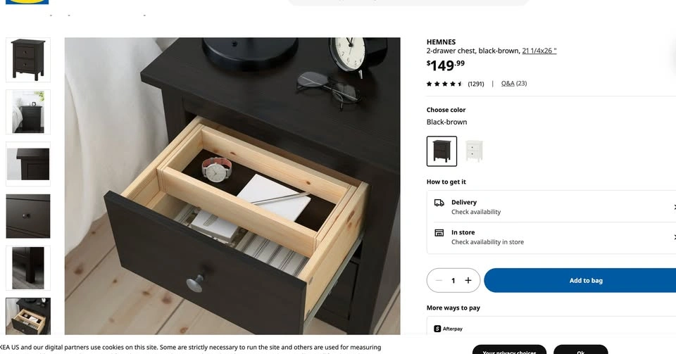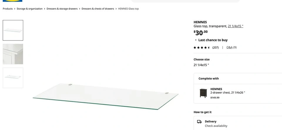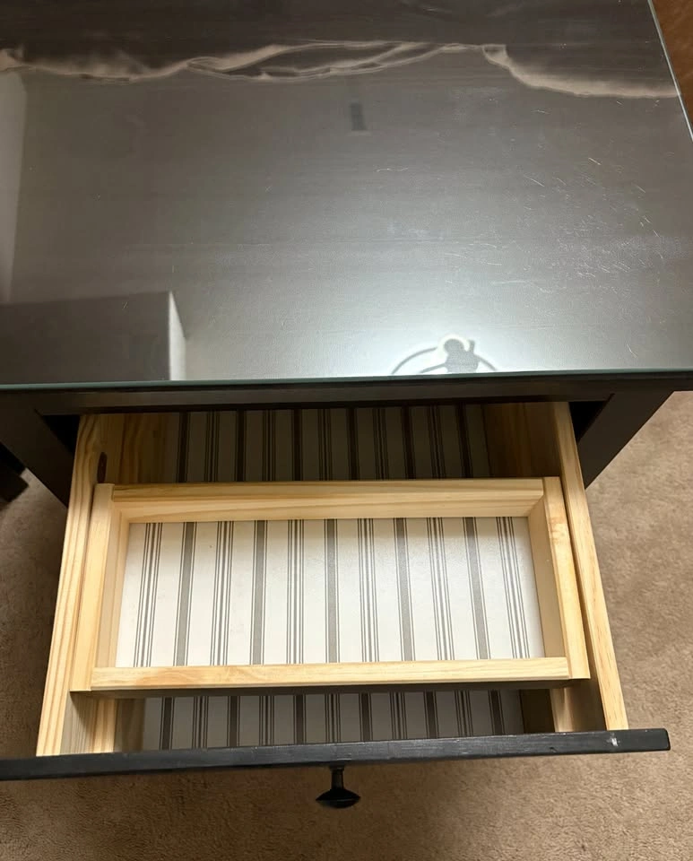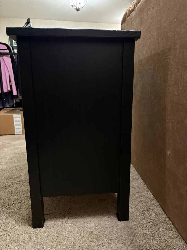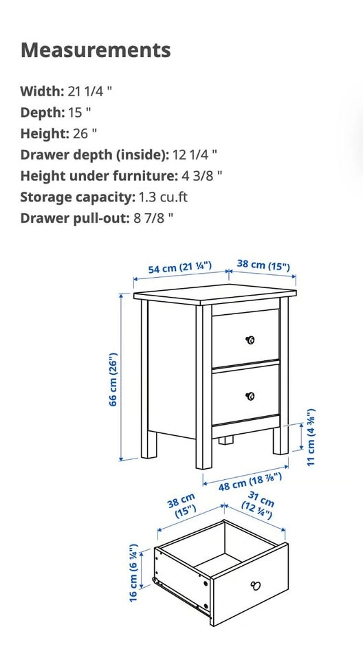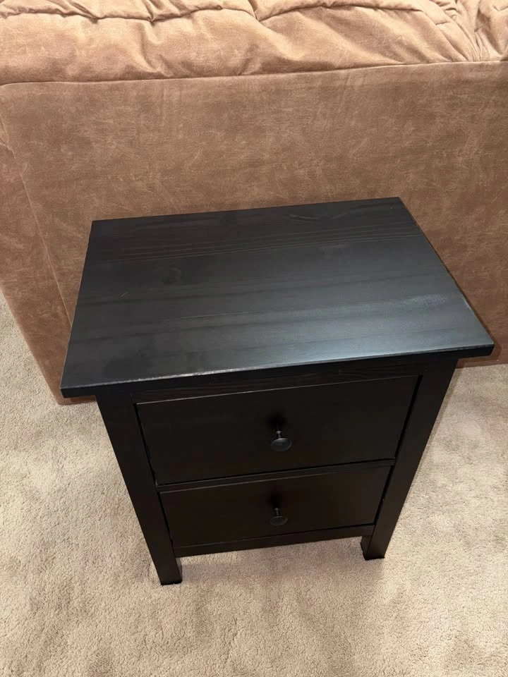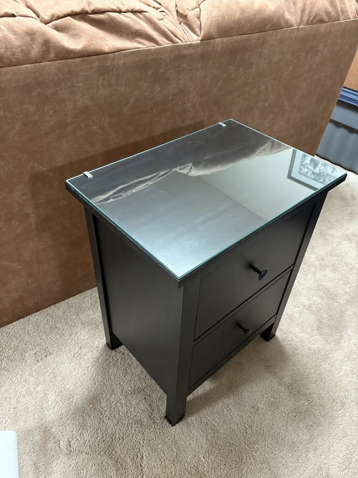 91Excellent used condition IKEA HEMNES 2-drawer chest (bedside table), black-brown with HEMNES Glass Top Side table new retails $149.99 +GST Glass top new retails $30 +GST Total = 179.99+GST = $188.99 Asking $120 *cash only* Some light surface scratches on glass top and very minor dings on wood itself (see video and photos). Photographed with and without glass top so you can see wood has been protected and is like new on the top. Selling a similar dresser in another ad. Measurements Width: 21 1/4 " Depth: 15 " Height: 26 " Drawer depth (inside): 12 1/4 " Height under furniture: 4 3/8 " Storage capacity: 1.3 cu.ft Drawer pull-out: 8 7/8 " PLEASE READ: Downsizing my home sale! Please see my other ads (always adding more!). Will discount purchases of multiple items! If ad is still up, item is available. Located in Millwoods, near Menisa Elementary school - here’s the address for Menisa, please plug it into Google maps for approx. location: 933 Knottwood Rd S Northwest, Edmonton, AB T6K 3Y9 Will provide actual address when pickup is confirmed.