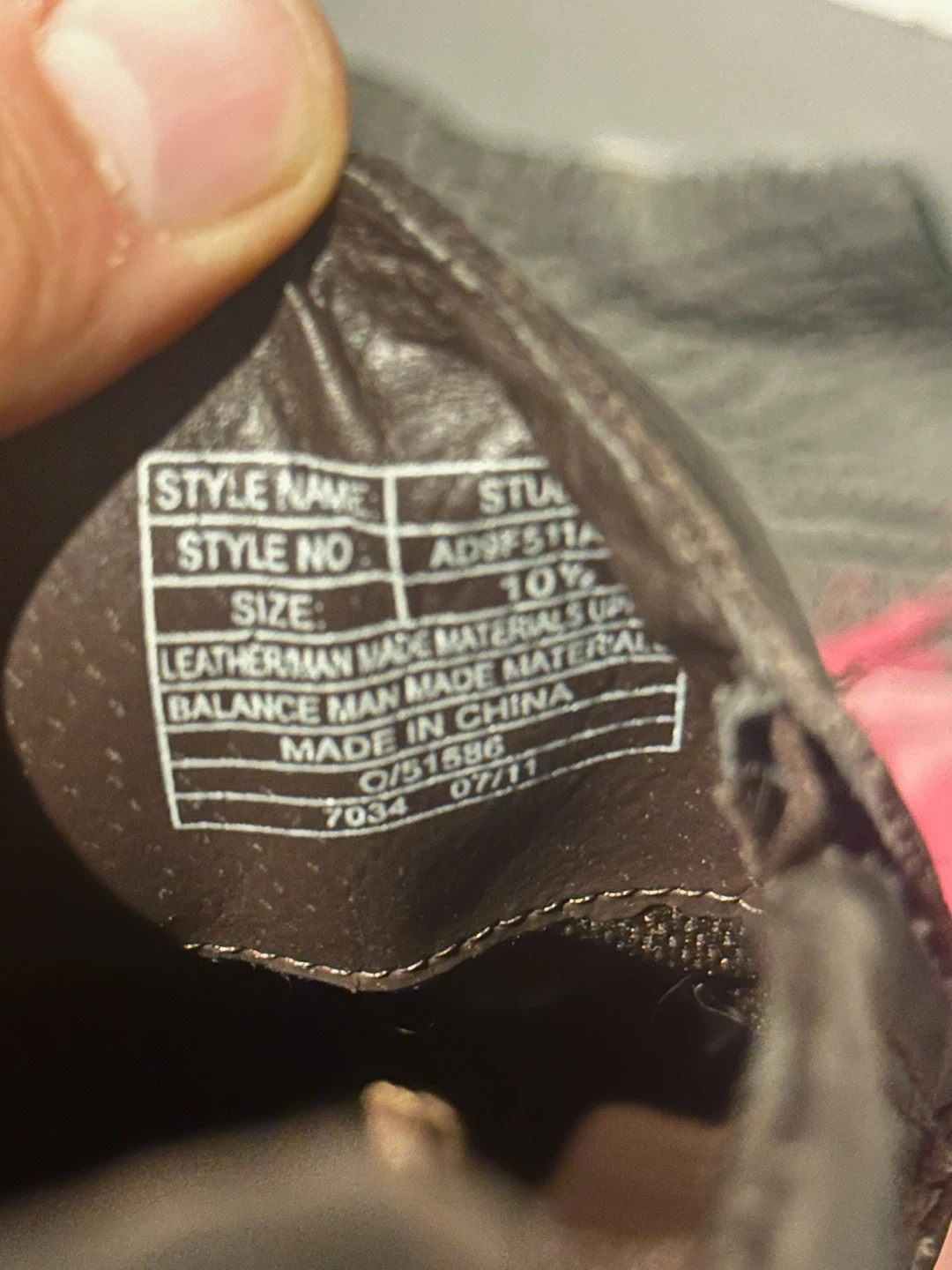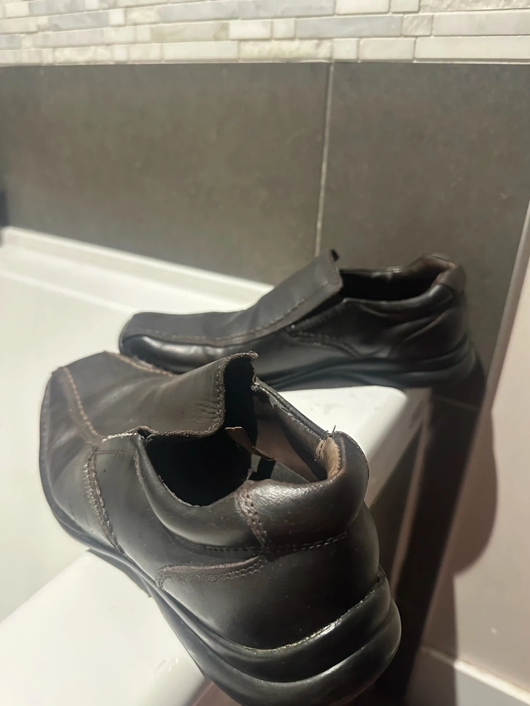 55Selling a pair ofleather slip-on shoes in size 10.5. They're in good condition and would be great for everyday wear! The style number is AD9F511A. Made with leather and man-made materials. No try ons Pickup Olympic village weeknights 6-8 and all weekend Cash