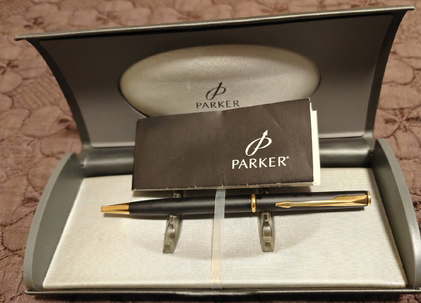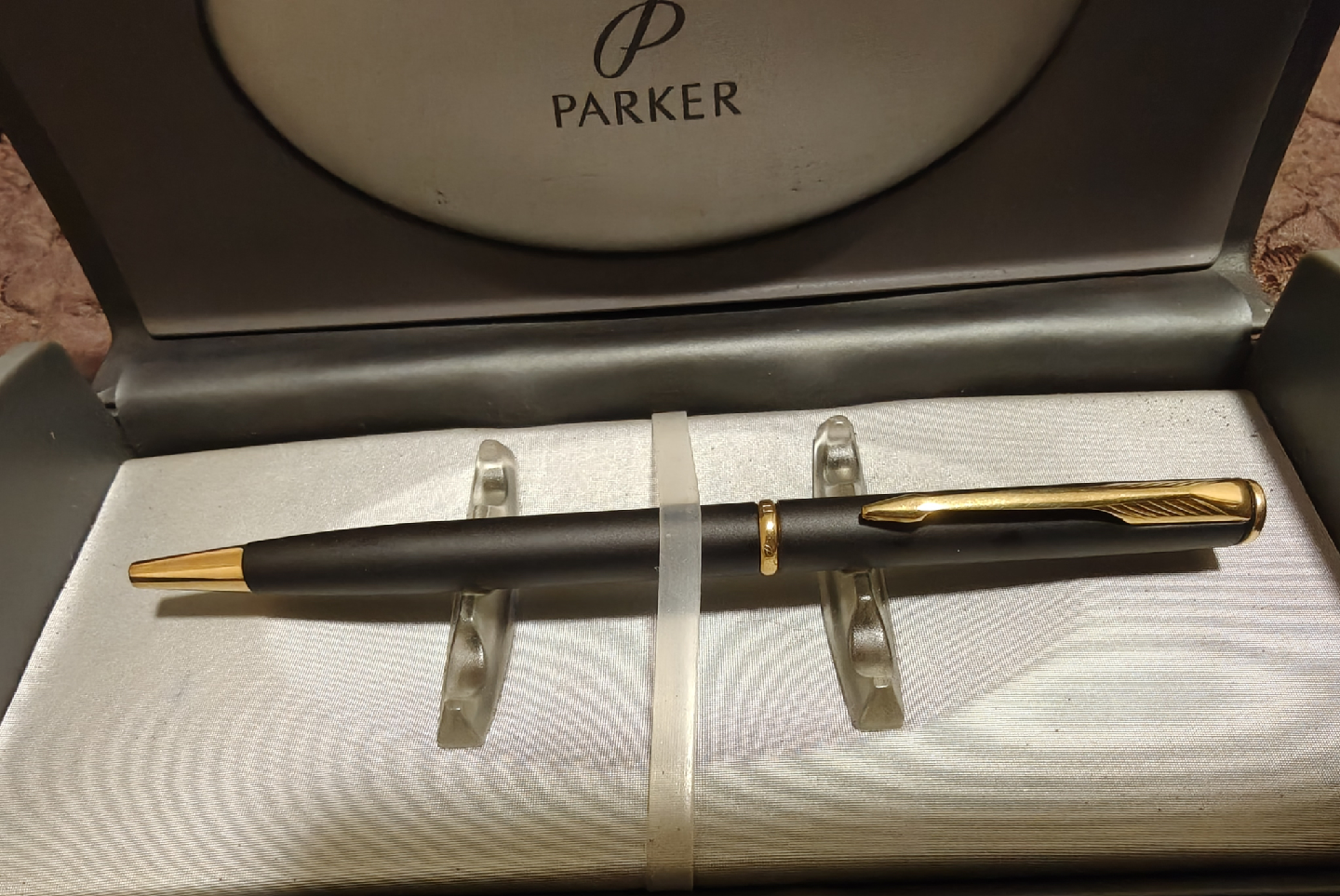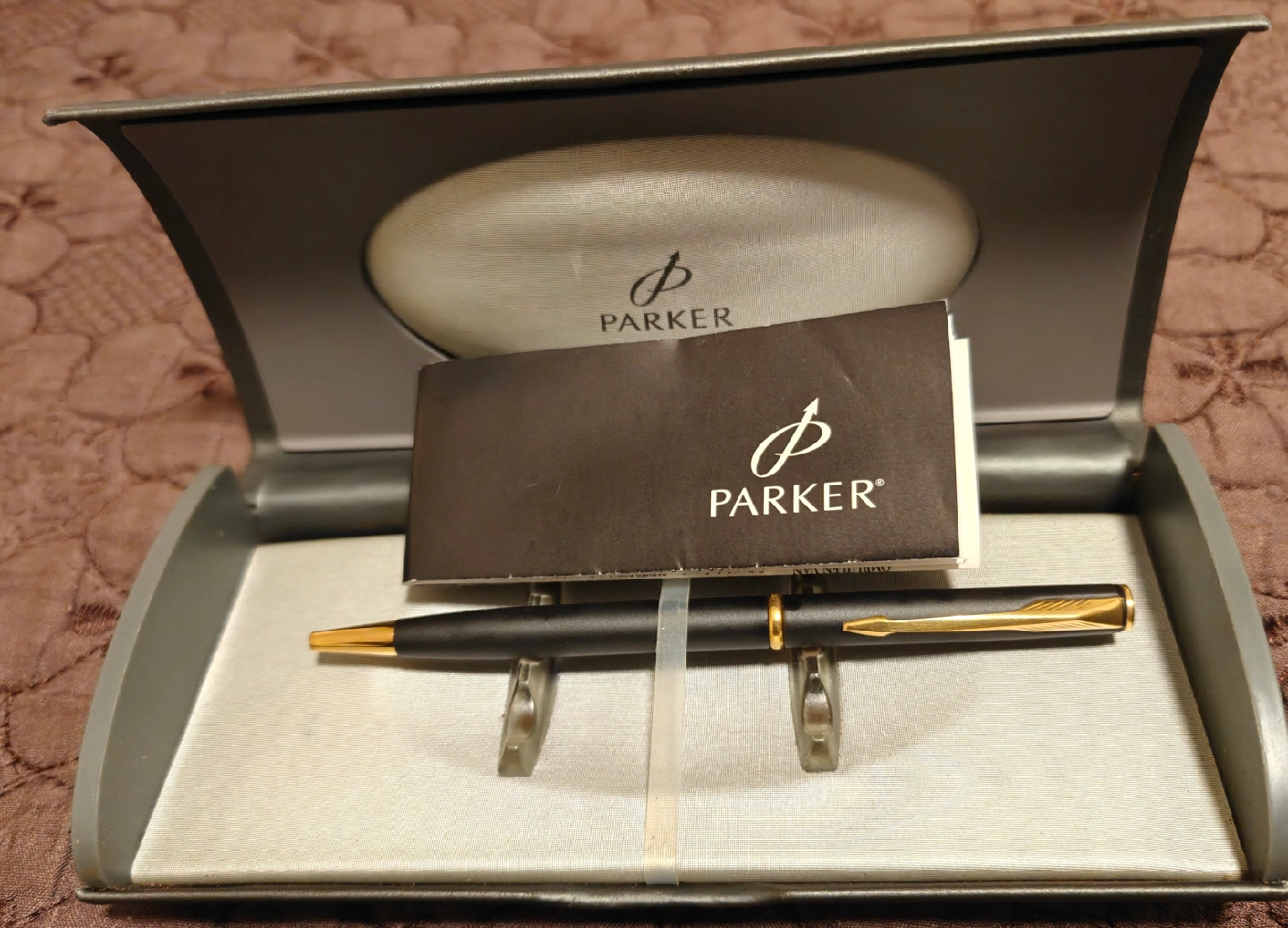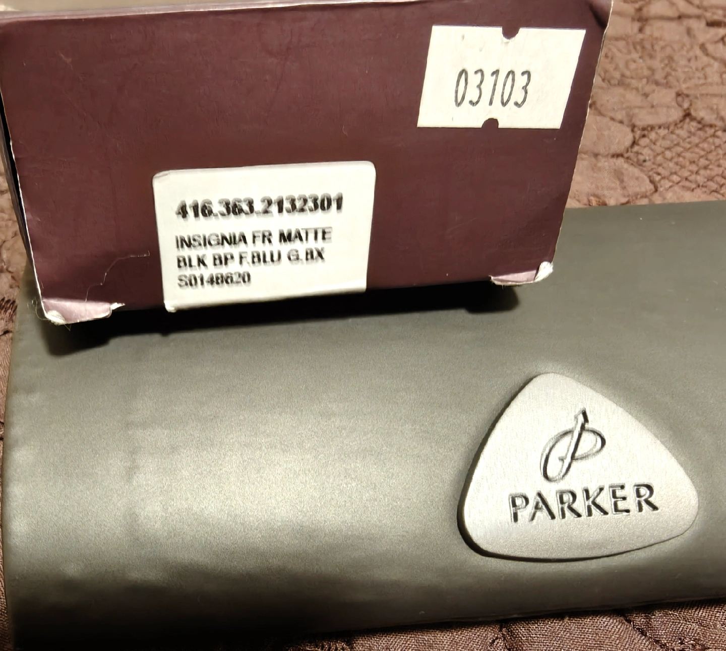 Selling a Parker Insignia FR Matte Black Ballpoint Pen. It comes with its original box. The pen is in great condition and ready for a new owner!