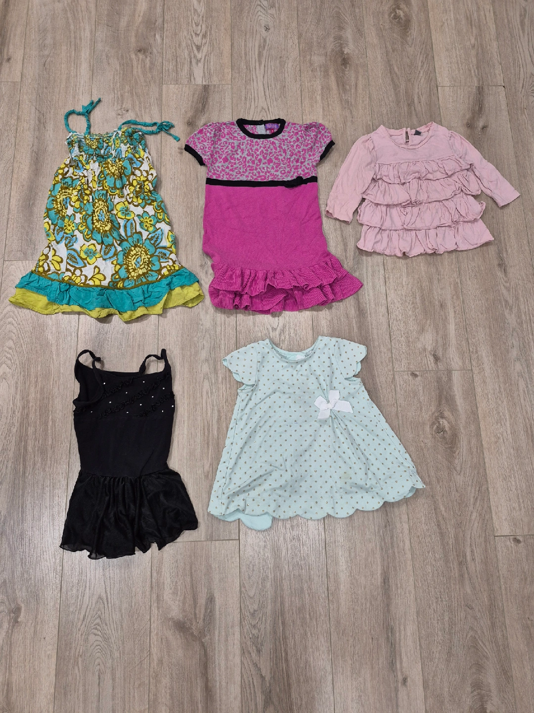 This vibrant collection of used girls' dresses, size 5T, includes a variety of styles perfect for any occasion. You'll find everything from summery sundresses to more formal options, all in good, used condition. The dresses are made from comfortable, durable fabrics that are easy to care for, ensuring they can keep up with your little one's adventures.