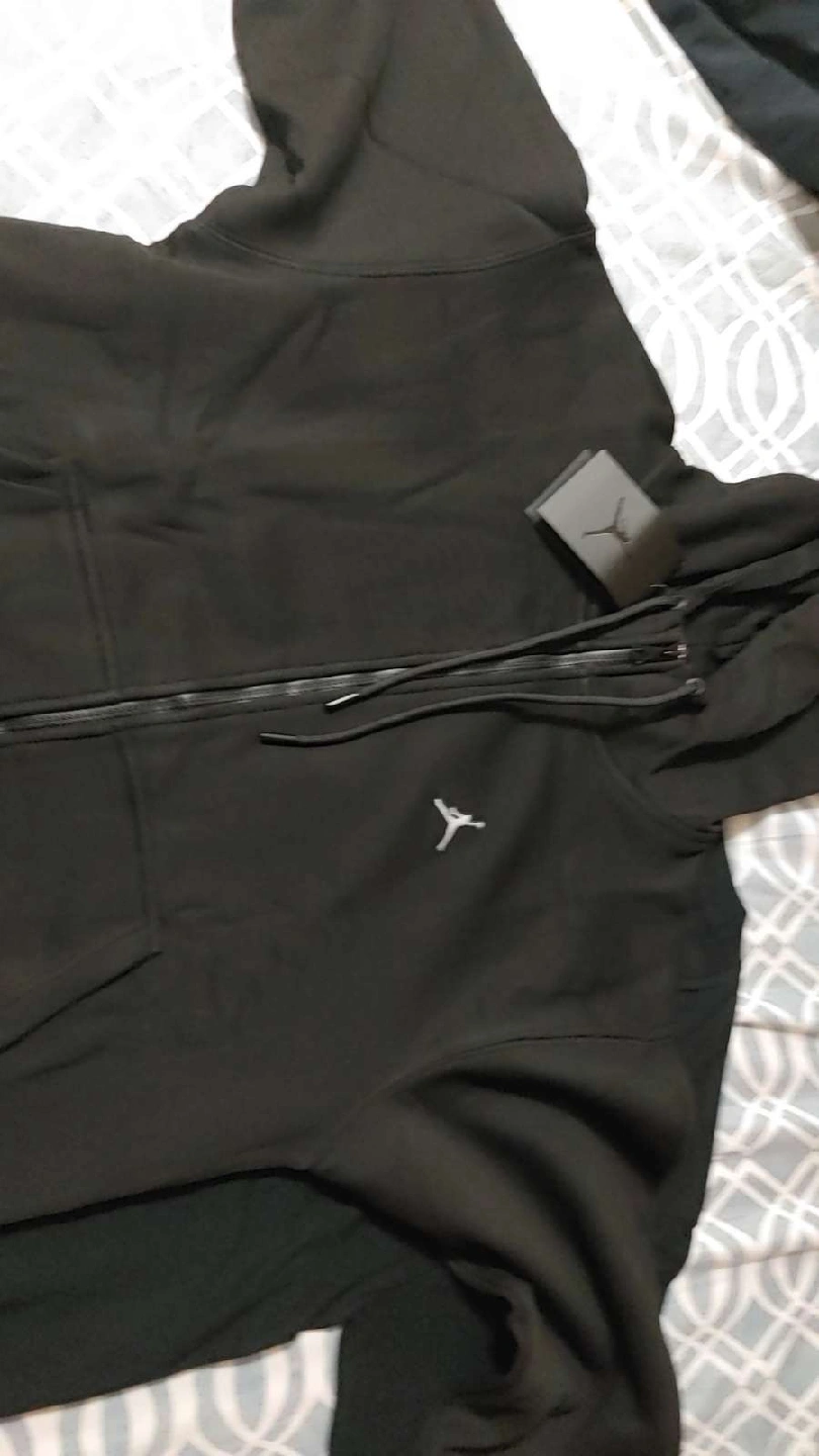 Selling a Jordan hoodie and t-shirt set in black. Both items are in great condition and feature the iconic Jordan logo. Perfect for any fan of the brand!