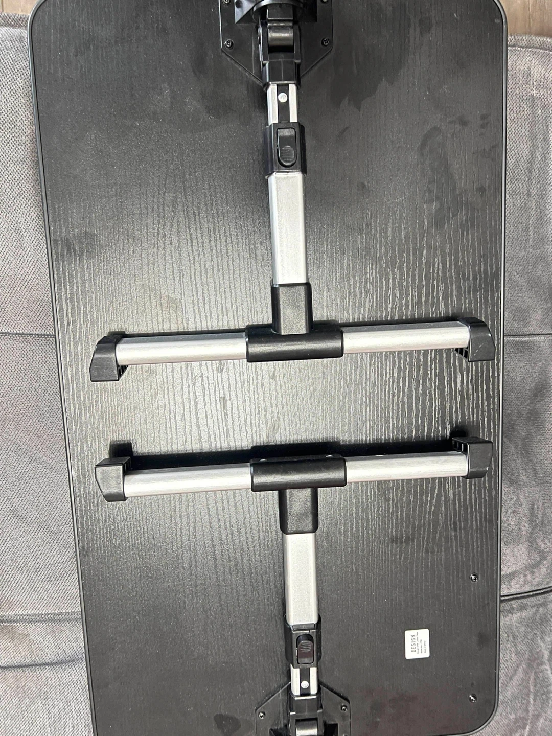 Selling a black iDesign laptop lap desk! It's perfect for working or relaxing from the couch or bed. It has a sturdy surface and adjustable legs for comfort and stability, making it great for any space