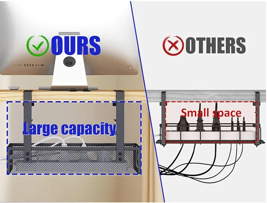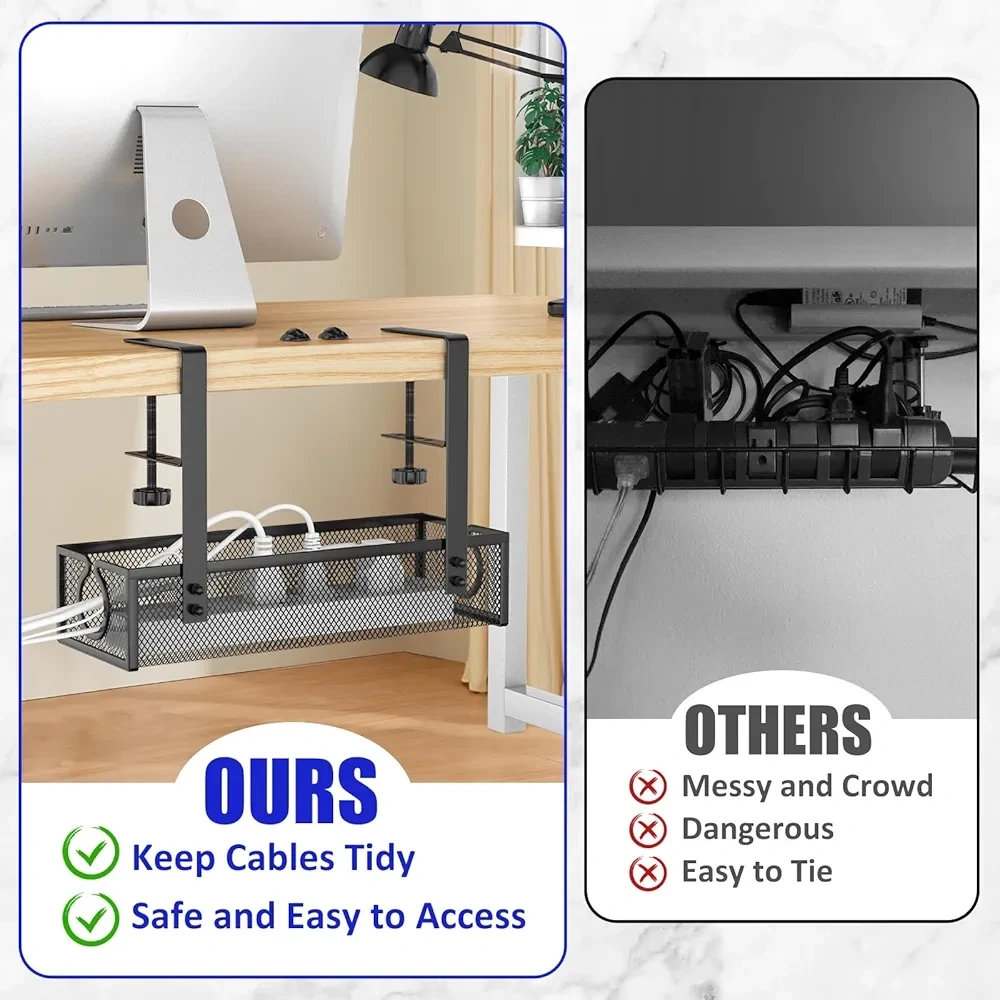 23Keep your workspace tidy with this under-desk cable management tray! It's designed to support tables with irregular edges, providing better weight balance and preventing slipping. It can accommodate desks with a thickness ranging from 1cm/0.4" to 8cm/3.1". The open design makes it easy to remove and manage cables. A great solution for a clutter-free desk! Color: white, black