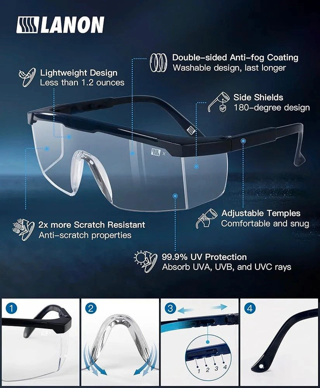 Impact, scratch, and fog resistant with UV protection and anti-fog coating. Fully adjustable fit (one size fits most) with a wraparound design for full coverage. Perfect for work, DIY projects, outdoor use & more. Comes with a FREE protective case to keep your glasses safe and scratch-free!