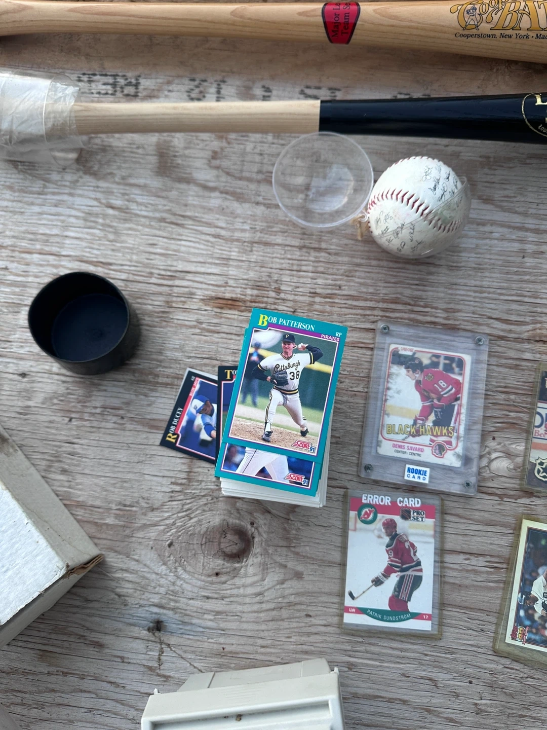 65Selling a collection of baseball cards and two Louisville Slugger baseball bats. Great for a collector or sports enthusiast! Over 200+cards all from the 90 OBO