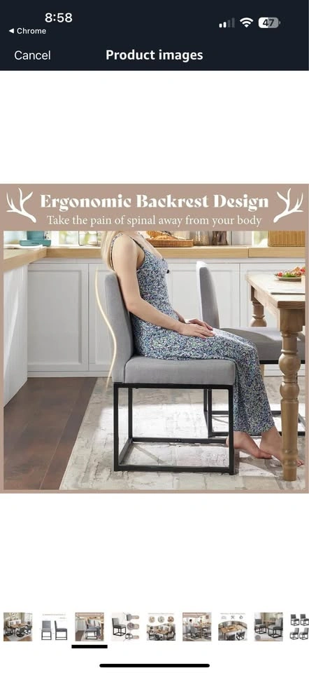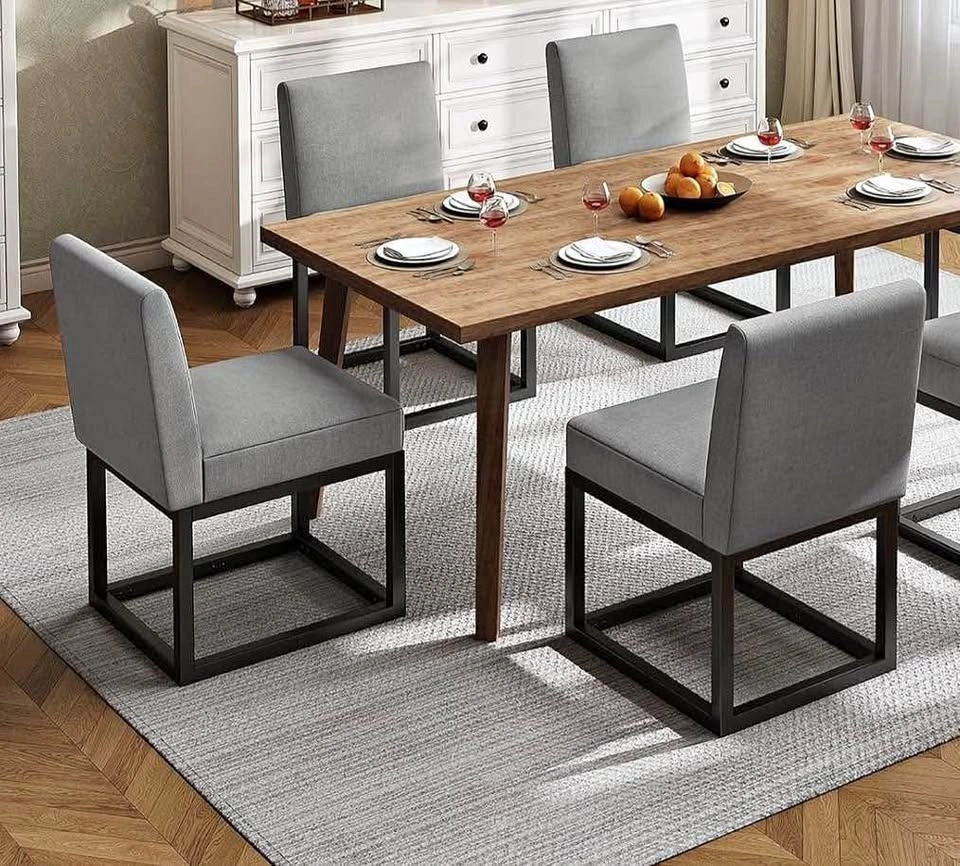 AMERLIFE Mid Century Linen Dining Chairs Set of 2, Modern Upholstered Dinner Chairs with Metal Frame for Restaurant, Dining Room, Kitchen, Grey.