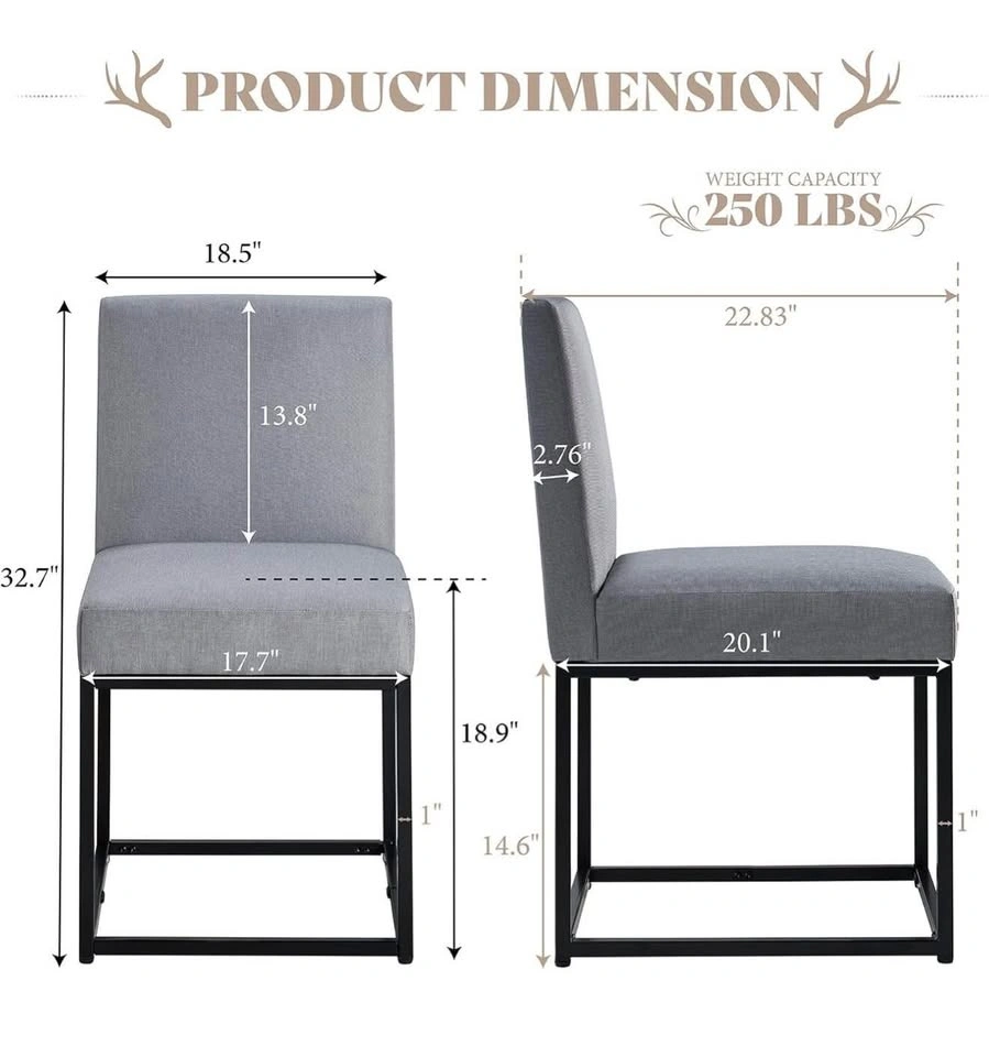 AMERLIFE Mid Century Linen Dining Chairs Set of 2, Modern Upholstered Dinner Chairs with Metal Frame for Restaurant, Dining Room, Kitchen, Grey.