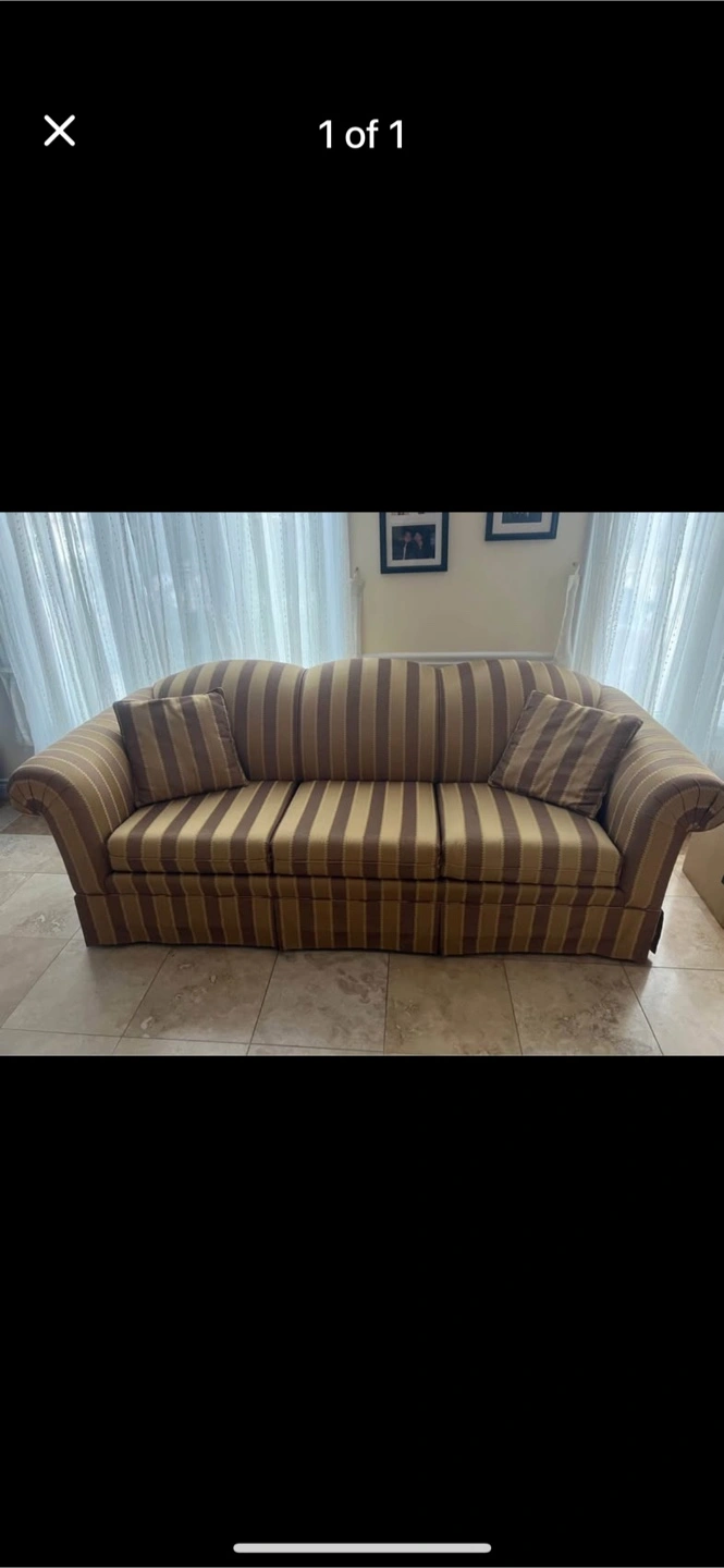 15Selling a comfy striped sofa that comes with two matching pillows! It's in great shape and would look lovely in any living room or den