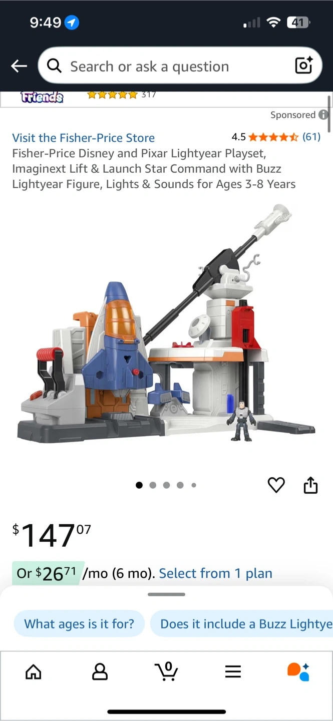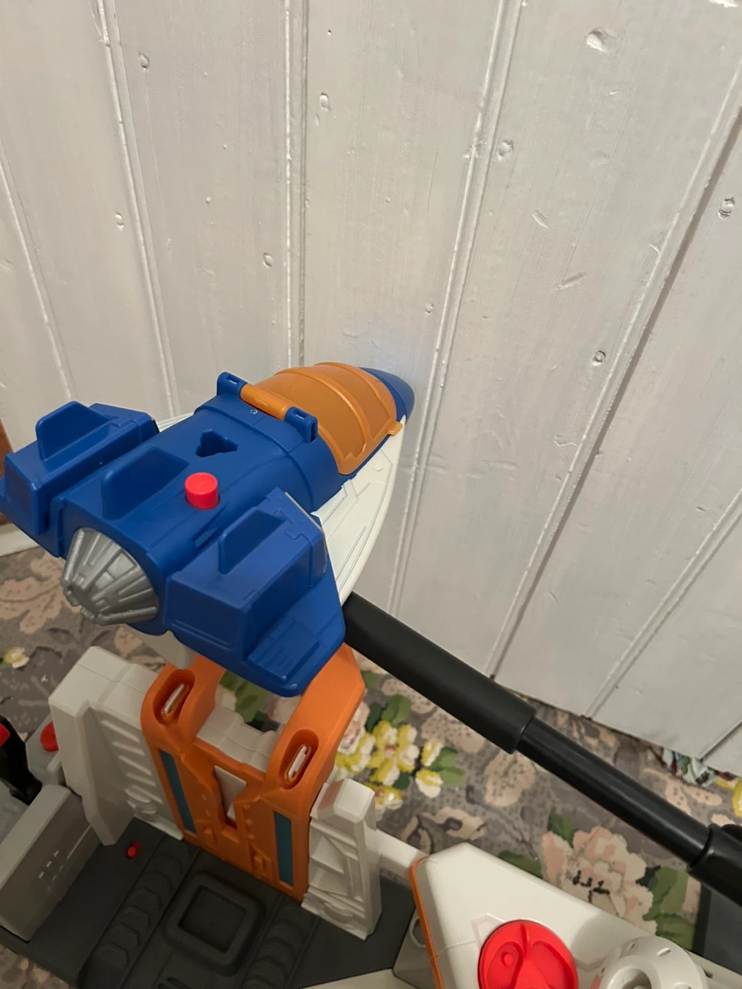 Buz lightyear themed space command rocket toy. Rocket with launch and rotate on the arm when the leaver is pulled. Rocket can also come off the arm for independent play. All parts included. Brand new condition