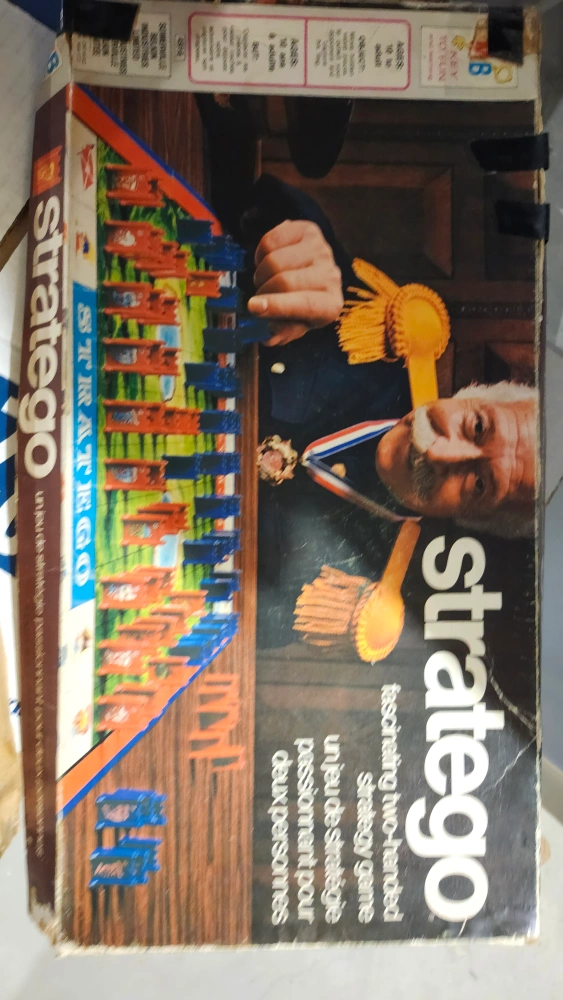 Selling a used Stratego board game. The box shows signs of wear, but all the pieces are included! This is a fascinating two-handed strategy game for two players.