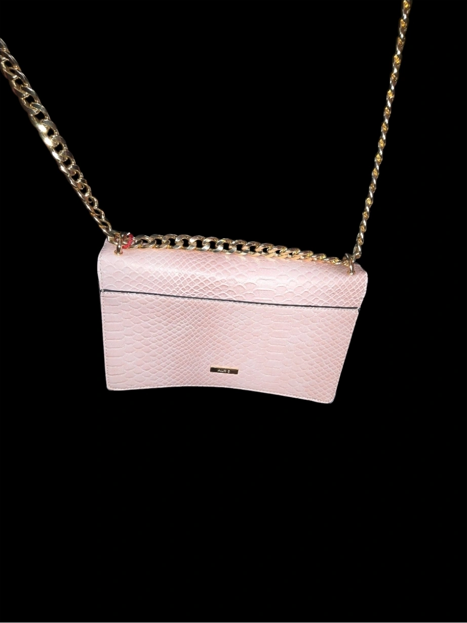 Selling a cute Aldo crossbody bag! It's a light pink colour with a floral and crane design. The bag has a gold chain strap and a tassel detail. Perfect for adding a touch of elegance to your outfit!