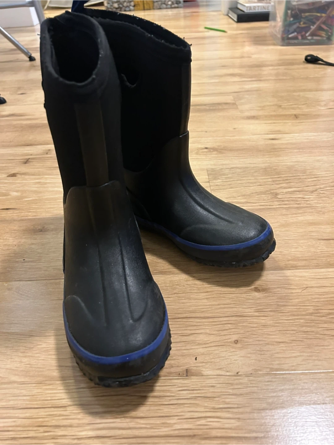 Selling a pair of Cougar Storm kids' black rubber boots in size 1. These boots are perfect for keeping little feet dry and comfortable during wet weather. They are in great condition and ready for a new owner!