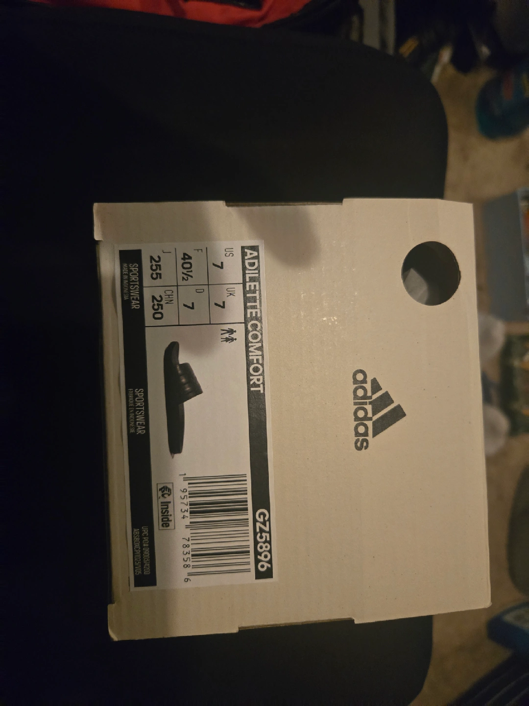 Selling a pair of Adidas Adilette Comfort slides in black, size 7. They come with the original box. These are a comfortable and stylish choice for everyday wear!