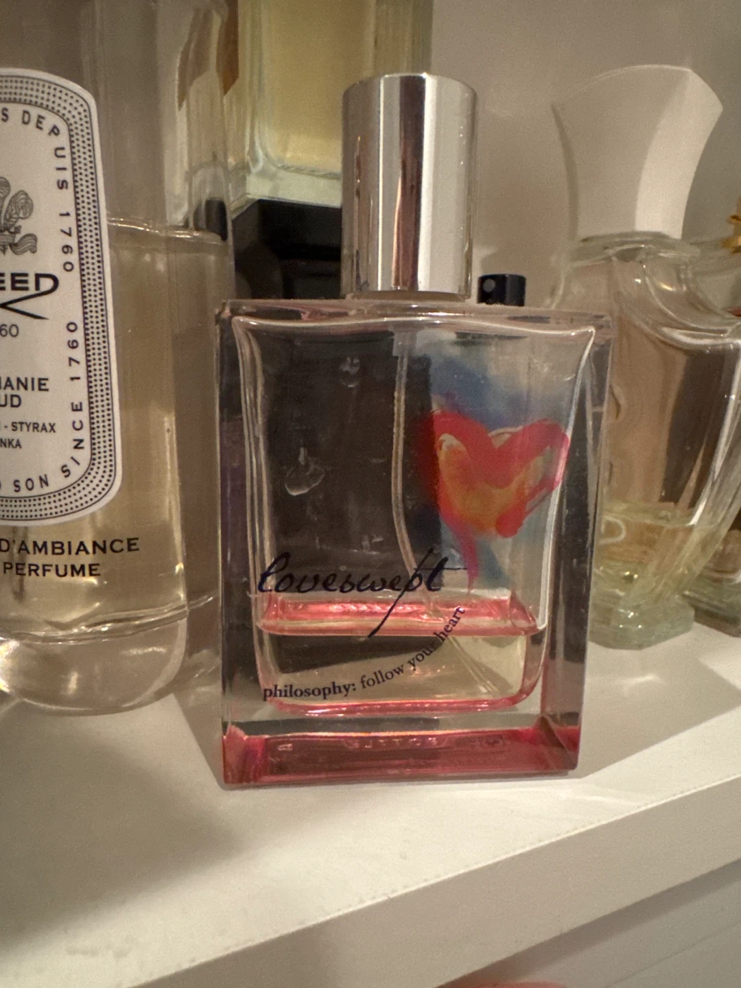Selling a bottle of Philosophy Loveswept perfume. The bottle says 'philosophy: follow your heart'. It's a lovely scent!