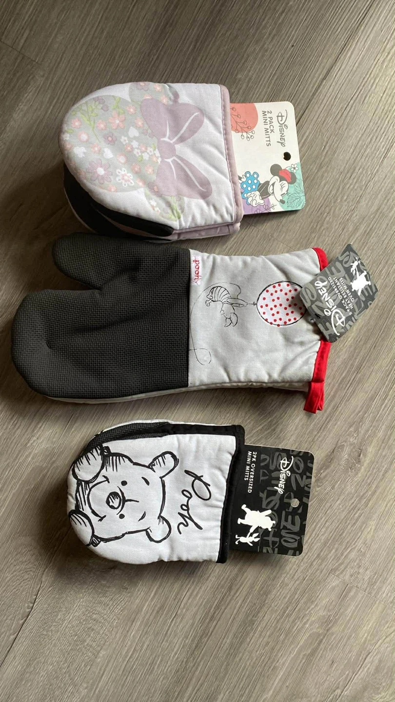 Selling a set of Disney oven mitts! This includes a 2 pack of mini mitts and a 2 pack of oversized oven mitts. Features Minnie Mouse and Winnie the Pooh designs