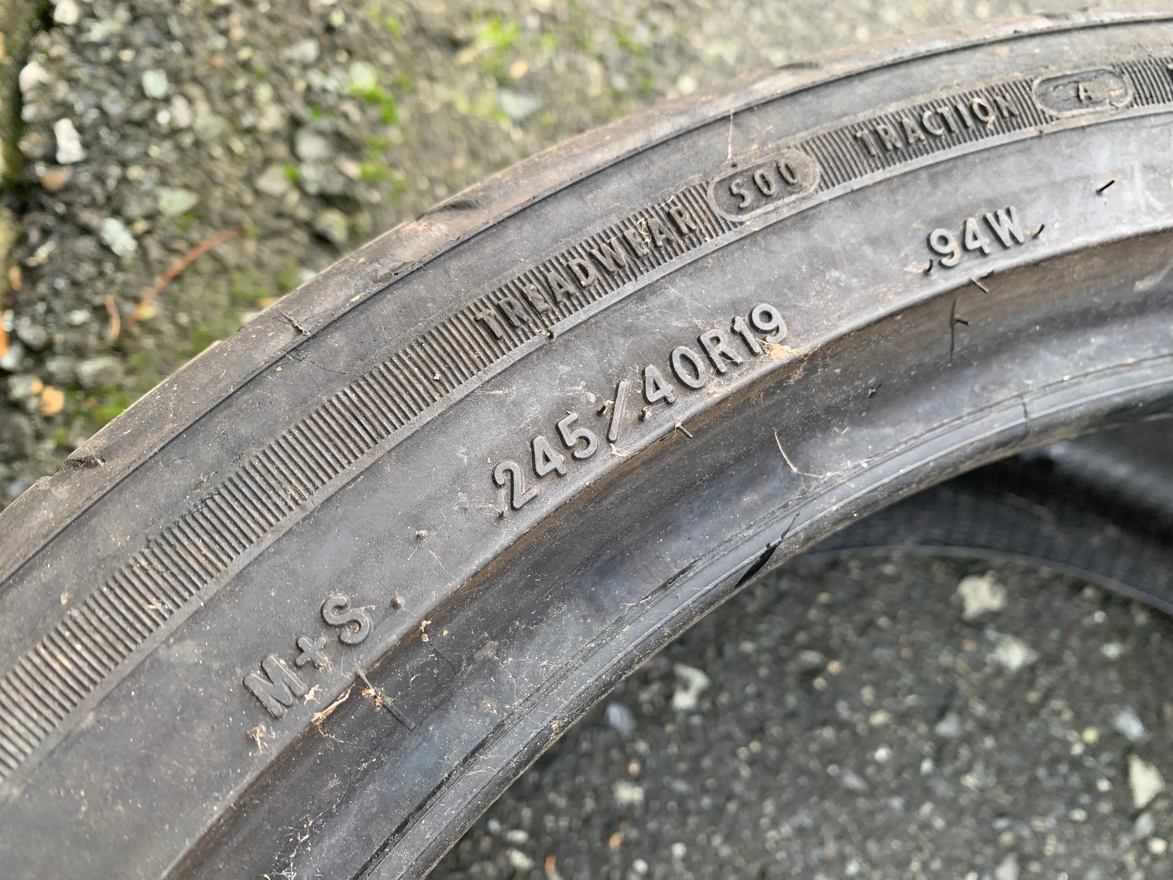 60a nice all season Goodyear performance tire with lots of tread (1 TIRE ONLY) size 245/40/19 94W M+S Goodyear Eagle F1 Asymmetric with no repairs and 80% tread does have some curb rash at the lip saver in one spot (thickest part of rubber rim protector) cosmetic only come grab it for only $160 or pay $500 for a new one huge savings take advantage $$$ come get the bargain $$$ (1 TIRE ONLY) I also have these tires available in the same size if interested:- 1 X 245 40 19 245/40/19 98W OHTSU FP8000 np 80% tread 1 x 245/40/19 98V M+S Goodyear Ultragrip performance + np 80% tread 1 X 245/40/19 98W M+S Bridgestone Potenza RE980 AS+ np 85% tread 1 x 245/40/19 98W M+S Joyroad Sport RX6 np 60% tread 1 x 245/40/19 98Y Michelin Pilot Sport 4S MO1 np 70% tread we are located in Surrey BC but can also deliver into vancouver island or anywhere in canada or pickup locally in newton surrey or fleetwood surrey NOTE: Vancouver Island: victoria or nanaimo $15 FLAT RATE delivery charge (PER TIRE) if I have enough appointments booked to justify the trip cost to come over. leave ph no and Ill get you a date for expected delivery with this option. otherwise i can get you a shipping quote but will need a full ship to address.
