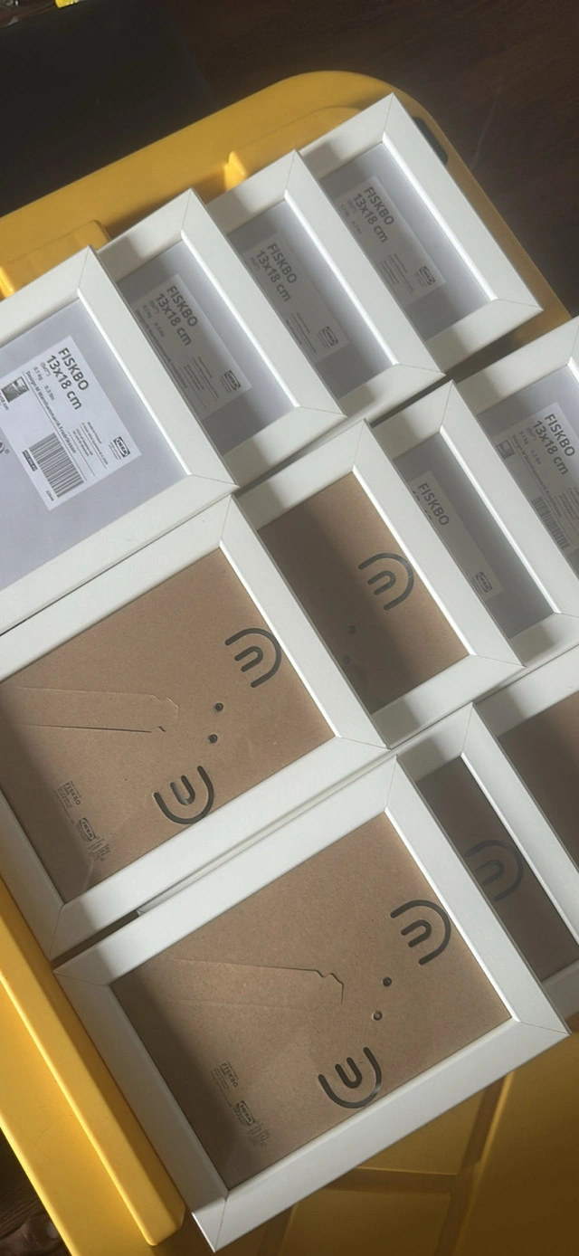 Get your memories beautifully displayed with these twelve IKEA Fiskbo frames, each perfectly sized at 13x18cm. Ideal for creating a gallery wall or scattering cherished photos throughout your home. These frames have been used, but are in good condition, ready to showcase your favourite moments. * Brand: IKEA * Model: Fiskbo * Dimensions: 13x18 cm * Quantity: 12 frames