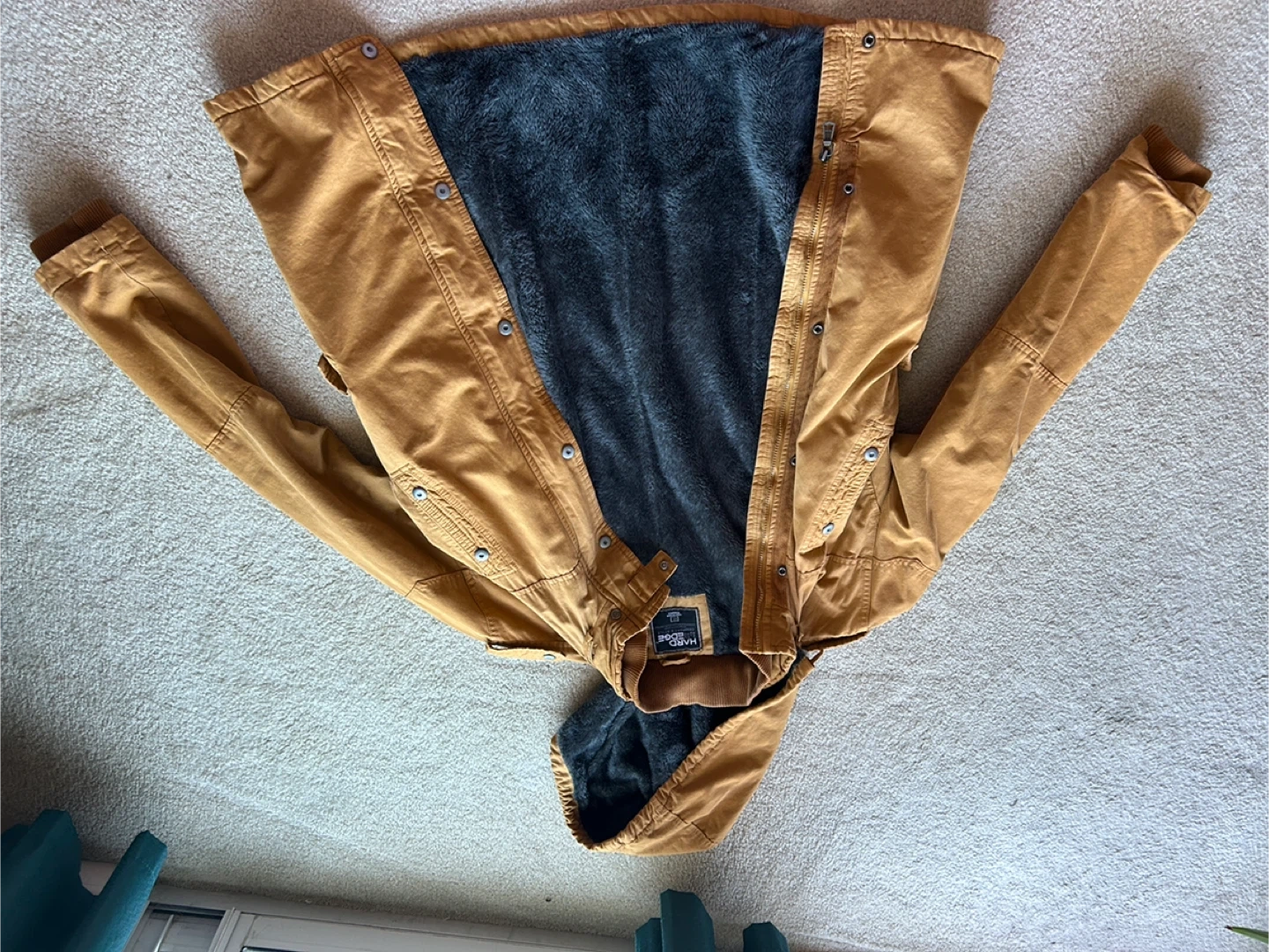 Selling a HARD LAND men's jacket, size medium. It's a sherpa-lined jacket, perfect for staying warm! The jacket is a nice brown/tan colour and appears to be in good condition