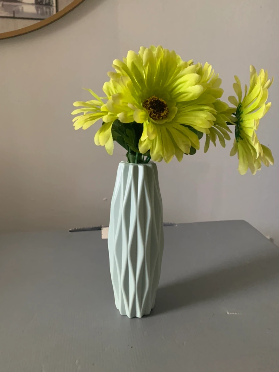 304A lovely vase with green flowers to add a pop of colour to your home Material : plastic