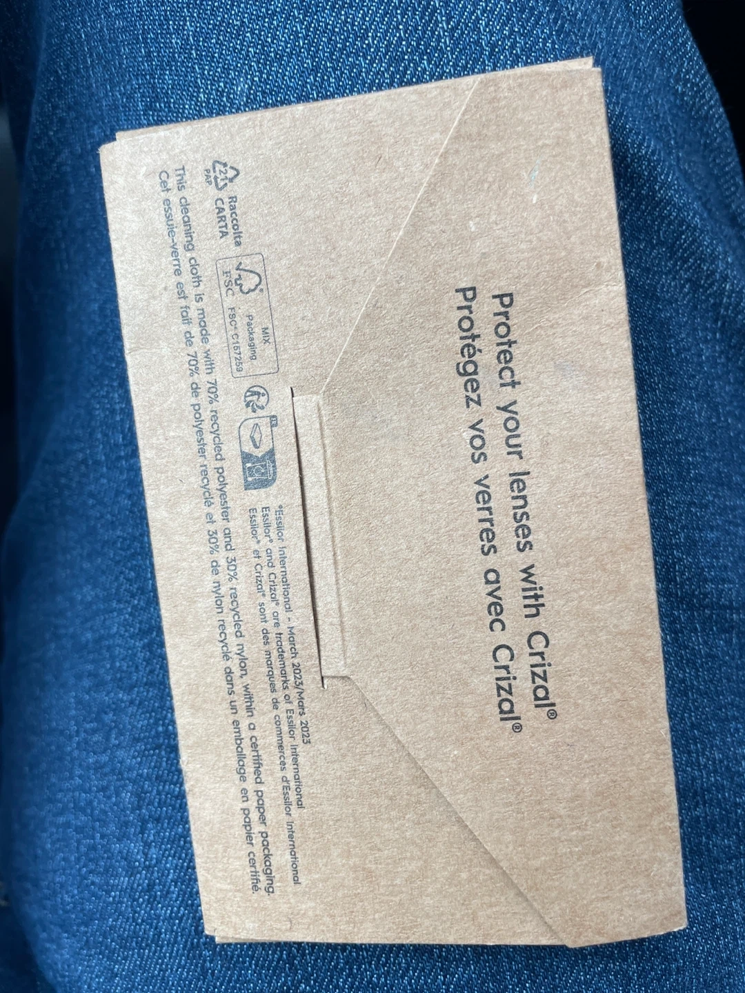 1000+Keep your lenses sparkling clean with this Essilor Crizal lens cleaning cloth! The cloth is made with 70% recycled polyester and 30% recycled nylon, all within a certified paper packaging
