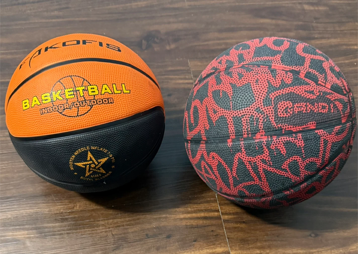 188Selling two basketballs! One is orange and black, marked for indoor/outdoor use. The other is black with a red design. Both are in good shape and ready for a new home!