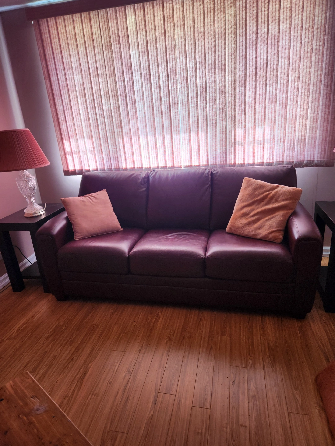 Selling a lovely burgundy leather sofa and armchair set! They're in great shape and would look fantastic in any living room or den. The rich colour adds a touch of elegance and warmth to your home. Perfect for relaxing and entertaining!
