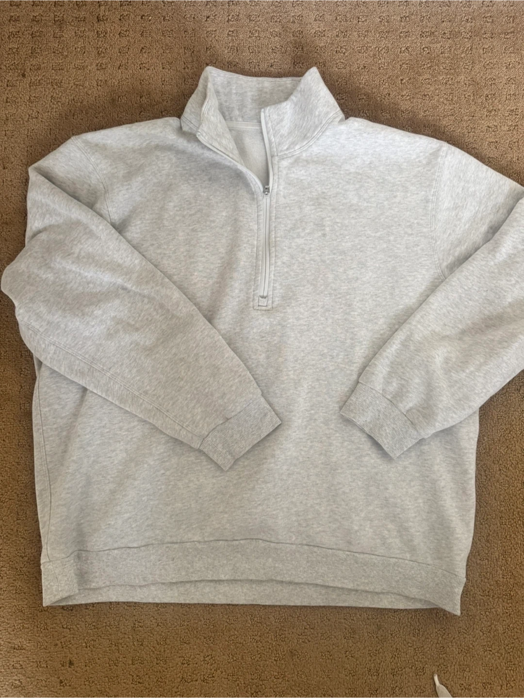 Cozy Lululemon half-zip pullover in a light grey! Perfect for layering or wearing on its own. It's in great condition and ready for a new home