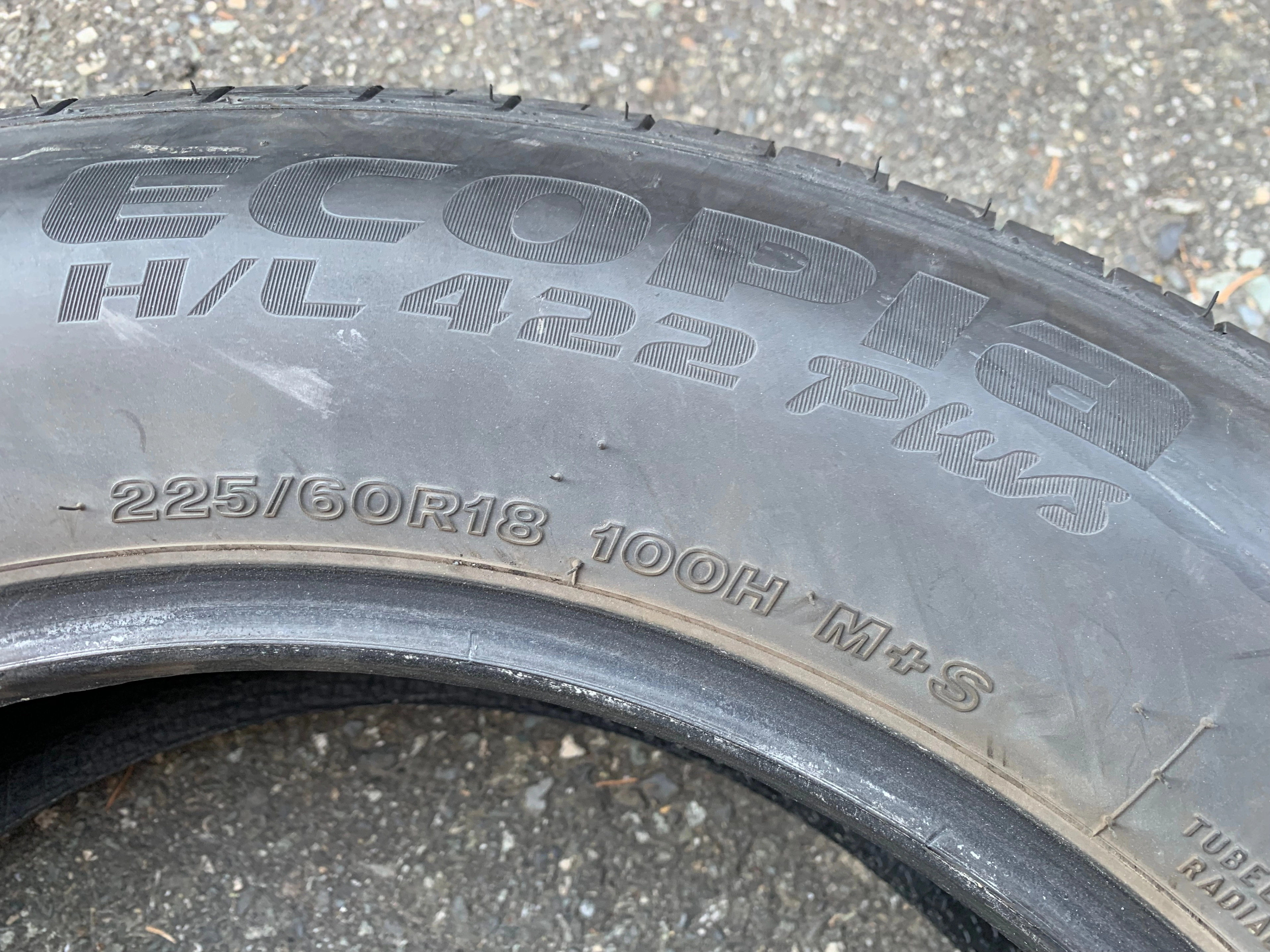 60a nice all season bridgestone Tire in ex cellent shape with lots of tread (1 TIRE ONLY) size 225/60/18100H M+S Bridgestone Ecopia H/L 422 Plus with no repairs and 75% tread come grab it for only $160 or pay over $300 plus taxes for a new one huge savings take advantage $$$ come get the bargain $$$ (1 TIRE ONLY) I also have these tires available in the same size if interested:- 1 x 225 60 18 225/60/18 100H M+S Uniroyal Tiger Paw Touring A/S np 90% tread 1 x 225/60/18 100T M+S Firestone All Season 1PL 65% tread 1 x 225/60/18 100H M+S Falken Wildpeak A/T Trail 01A np 70% tread 1 X 225/60/18 100H M+S continental pro contact TX np 70% tread 1 x 225/60/18 100H M+S Yokohama Avid GT 90% tread 1 x 225/60/18 100H M+S Falken Ziex ZE001 A/S np 60% tread 1 X 225/60/18 100H M+S Michelin Primacy A/S np 80% tread 3 X 225/60/18 100H M+S Firestone weathergrip np 80/85% tread we are located in Surrey BC but can also deliver into vancouver island or anywhere in canada or pickup locally in newton surrey or fleetwood surrey NOTE: Vancouver Island: victoria or nanaimo $15 FLAT RATE delivery charge (PER TIRE) if I have enough appointments booked to justify the trip cost to come over. leave ph no and Ill get you a date for expected delivery with this option. otherwise i can get you a shipping quote but will need a full ship to address.