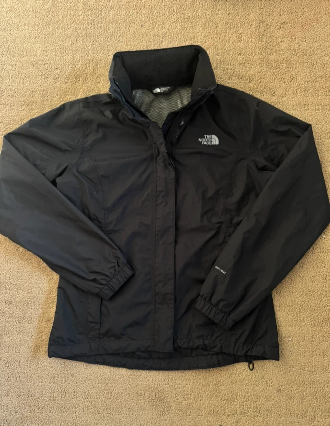 Selling a The North Face rain jacket in black. It is a size medium. Great for those rainy days!