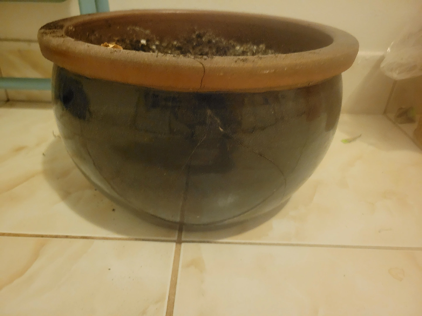 Large and heavy ceramic plant pot. Approx 10 inches in diameter. Perfect for aloe vera or another plant!