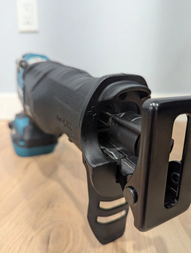 60MAKITA 18V LXT Brushless Reciprocating Saw (Tool Only) Model # DJR187Z Store SKU # 1001511109 brand new in box (BNIB) never used $319+tax new. Brushless DC motor with high power to weight and size ratio. Brushless DC motor generates less heat buildup and is ideal for use in prolonged manufacturing / production applications. eXtreme Protection Technology (XPT) offers maximum protection against dust, dirt and debris for optimal performance in extreme conditions. Increased cutting speed and stroke length offers maximum cutting efficiency. 2 speed settings provides ideal settings for wood or metal cutting applications. Newly designed vertical crank mechanism minimizes blade deflection and reduces vibration. Toolless shoe adjustment enables fast and easy adjustment on the jobsite. Large 2-finger trigger switch for optimum control and comfort. Retractable sky hook allows tool be hung on rafters, pipes or scaffolding. LED job light with pre-glow and after-glow features illuminates work area. Ergonomic soft rubber grip design for vibration absorption and comfortable operation.