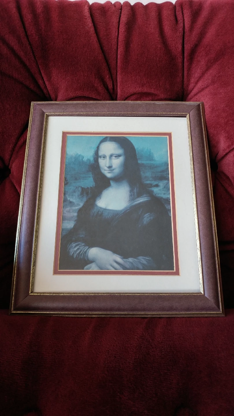 344Selling a framed art print of the Mona Lisa. It's in great shape and ready to hang in your home! 11" x 13"