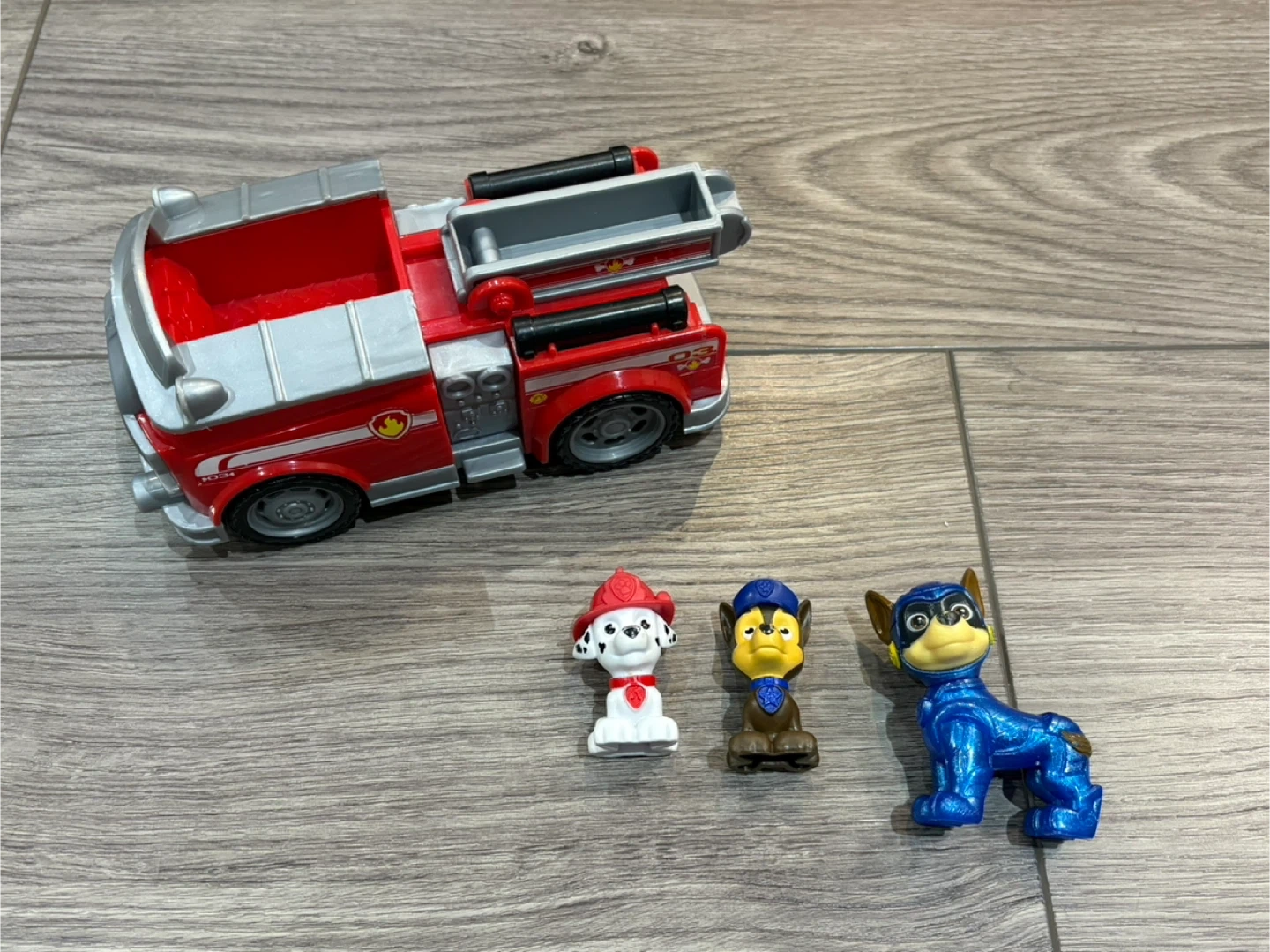 1000+Selling a Paw Patrol fire truck featuring Marshall, along with two Chase pup figures! Great for any Paw Patrol fan. Pick up in the Yonge and Finch area.