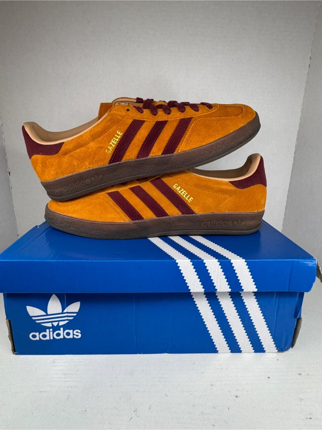 Selling a pair of Adidas Gazelle Indoor shoes in size 11. They come with the original box. These stylish sneakers are perfect for adding a touch of retro flair to your wardrobe!