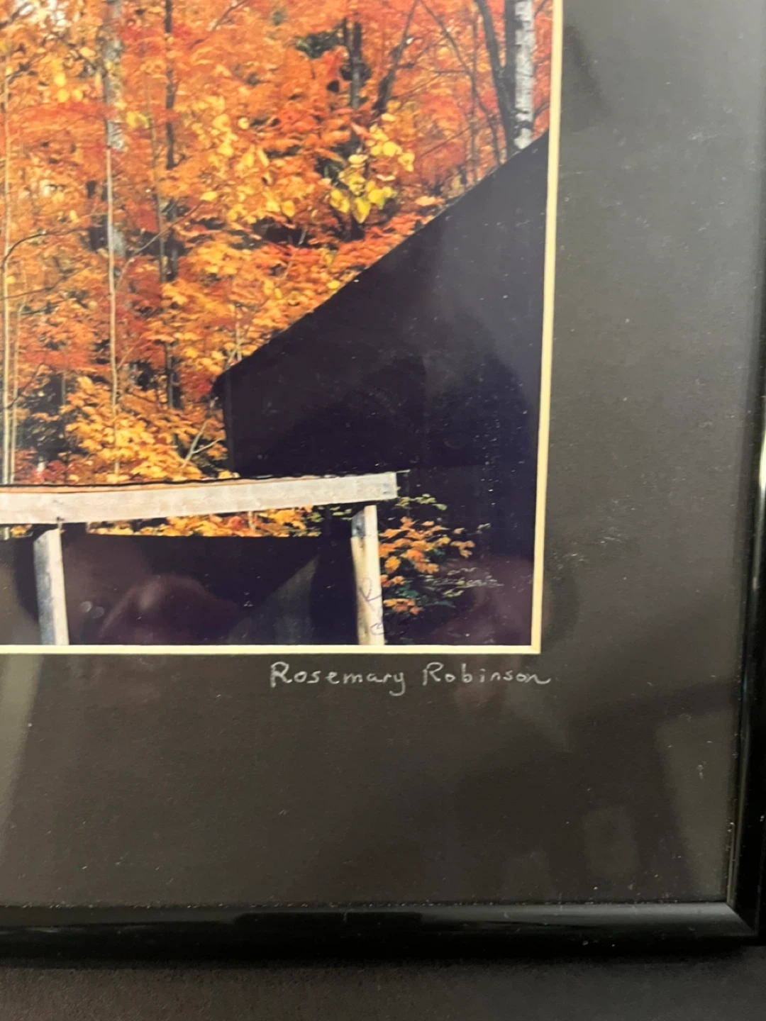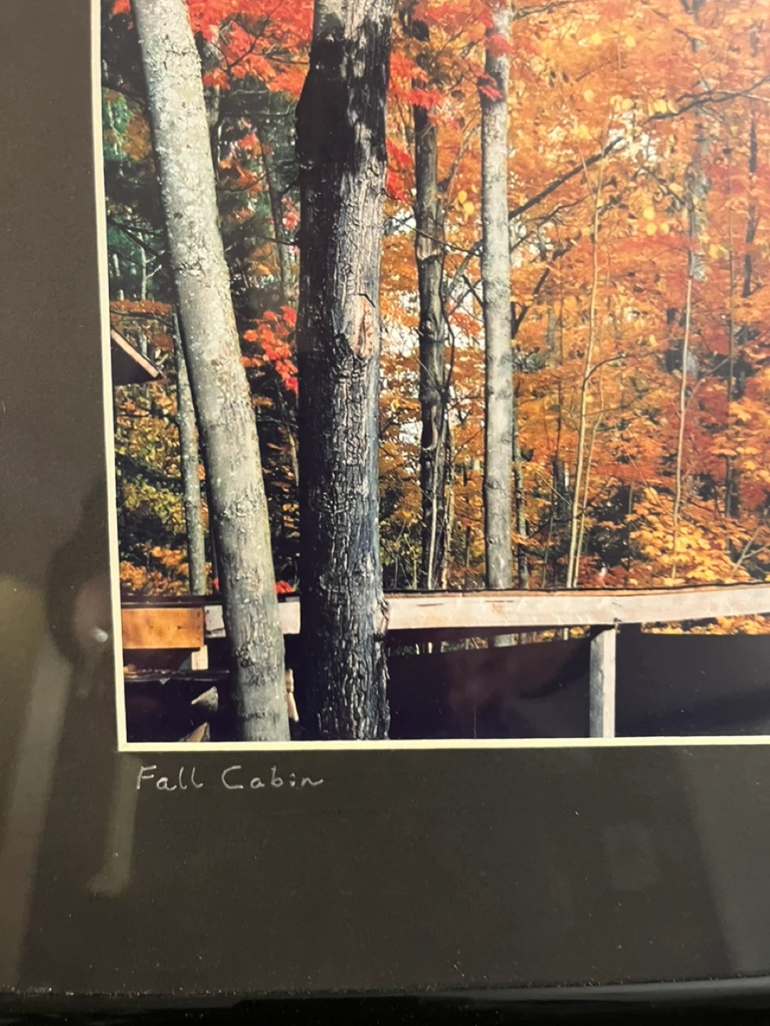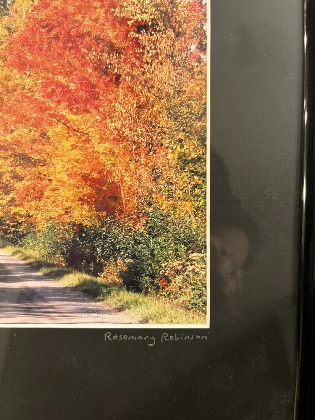 Two framed pictures signed by photographer. Vibrant Fall colours. Frame 9x14. Photograph 8x10. Sell individually for $30. Pair $50.