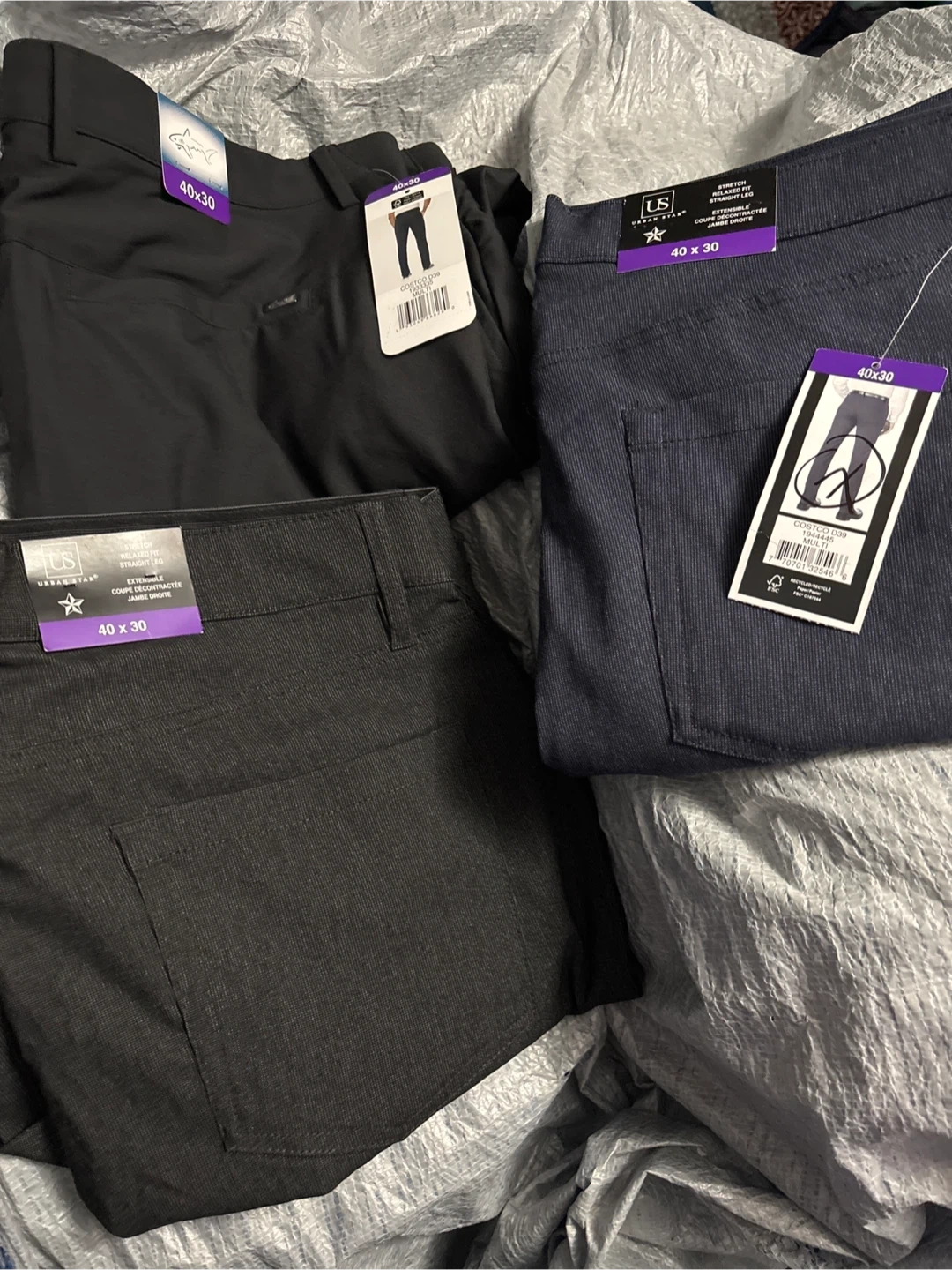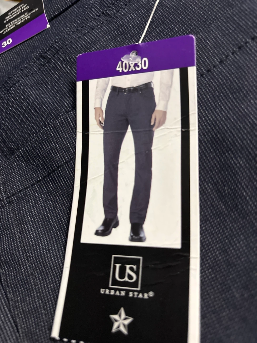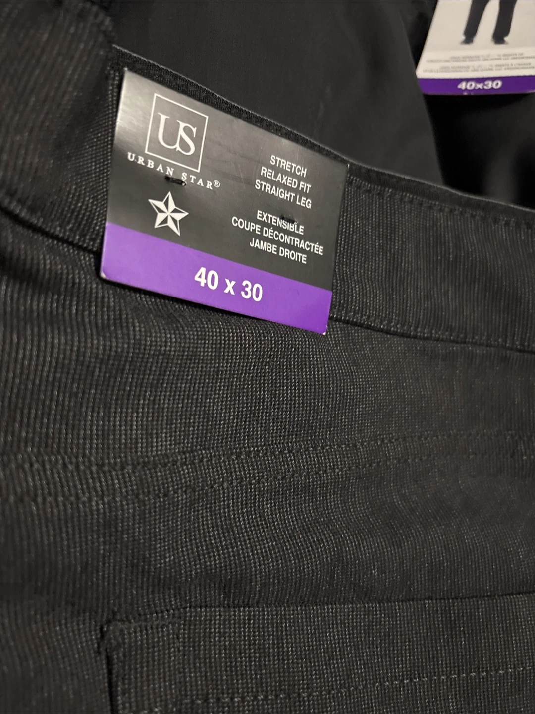 Selling new men's pants, size 40x30. They are new with tags and have a relaxed fit with a straight leg. They are also stretchable for extra comfort!