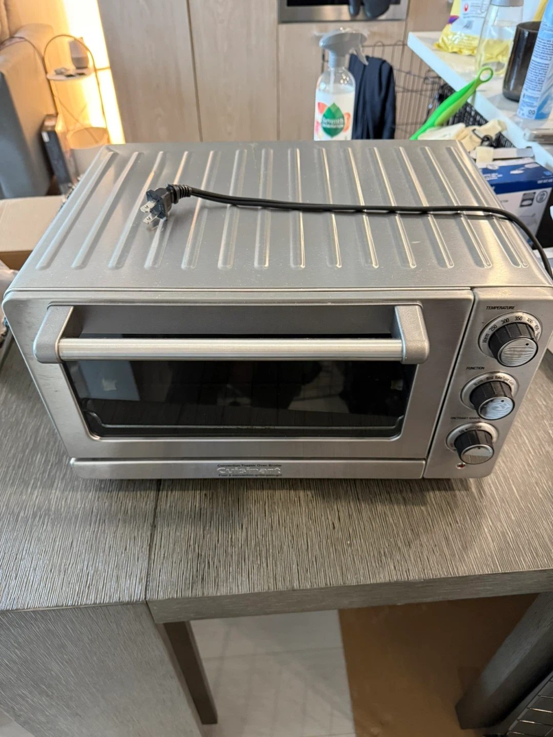Selling a Cuisinart convection toaster oven broiler. It's in good working condition and ready for a new home! Perfect for small kitchens or anyone who wants a versatile appliance for toasting, baking, and broiling