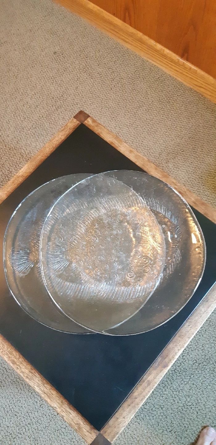 8262 clear glass plates by Kosta Boda of Sweden Both feature a unique embossed fish design. They're in great shape and would be a fun addition to any table setting! No chips or cracks
