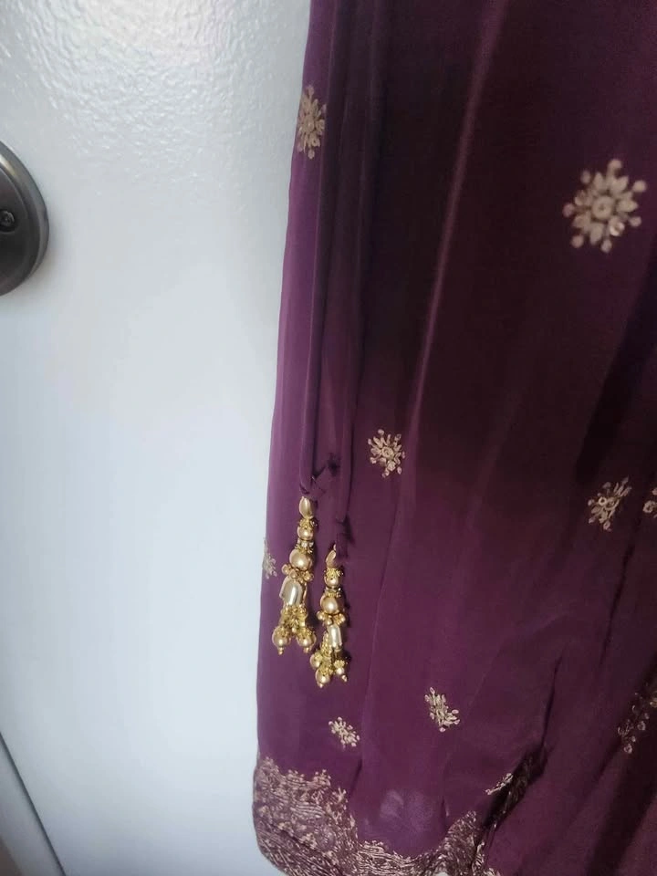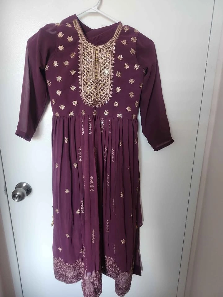 Beautiful plum/maroon 3-piece ethnic dress set for girls. Perfect for weddings, Eid, Diwali, or special occasions!
