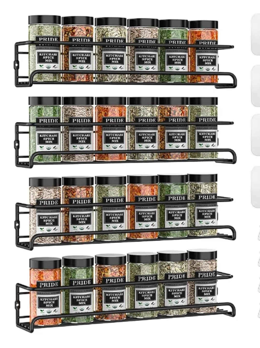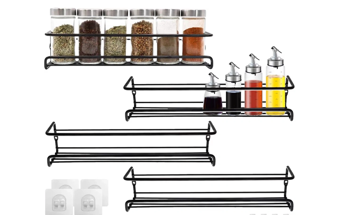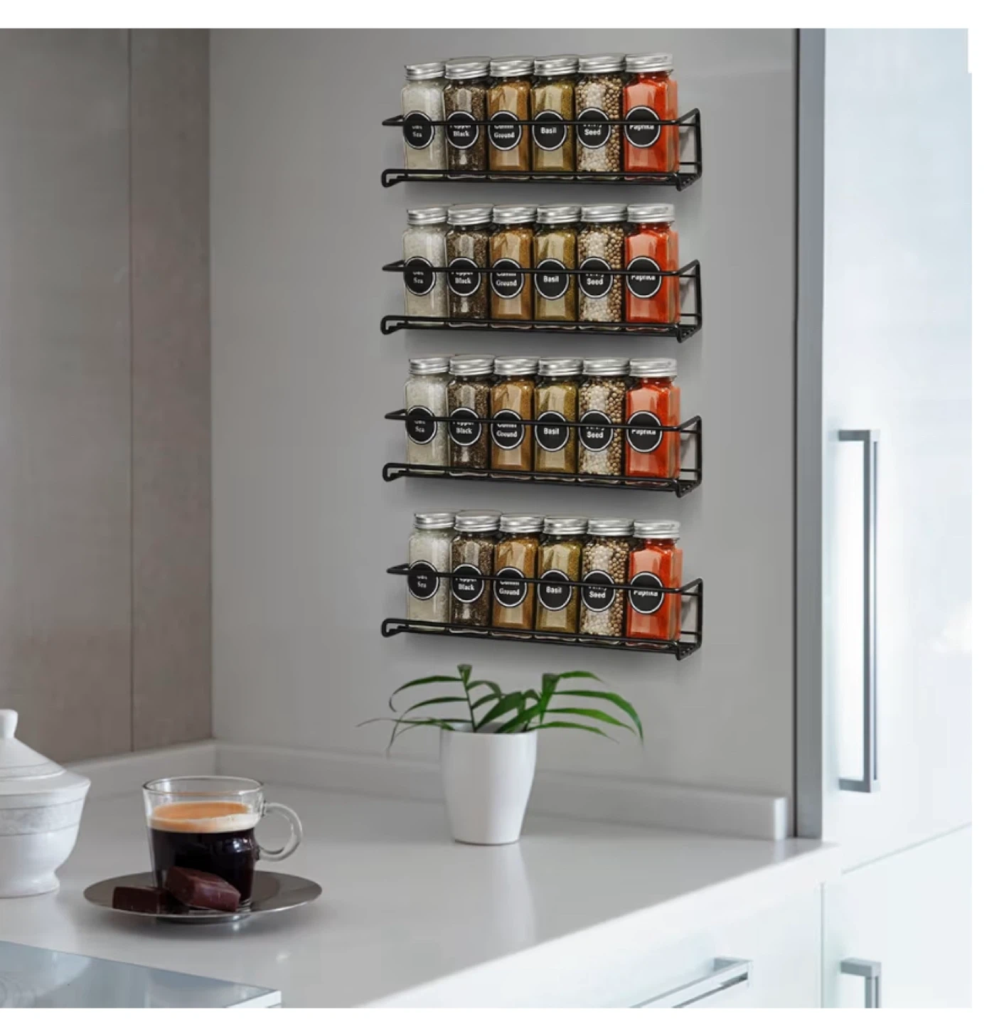 70Keep your spices organized with this 4-tier wall-mounted spice rack! It's a great way to save space in your kitchen and keep your spices within easy reach. The rack is black and comes with mounting hardware.