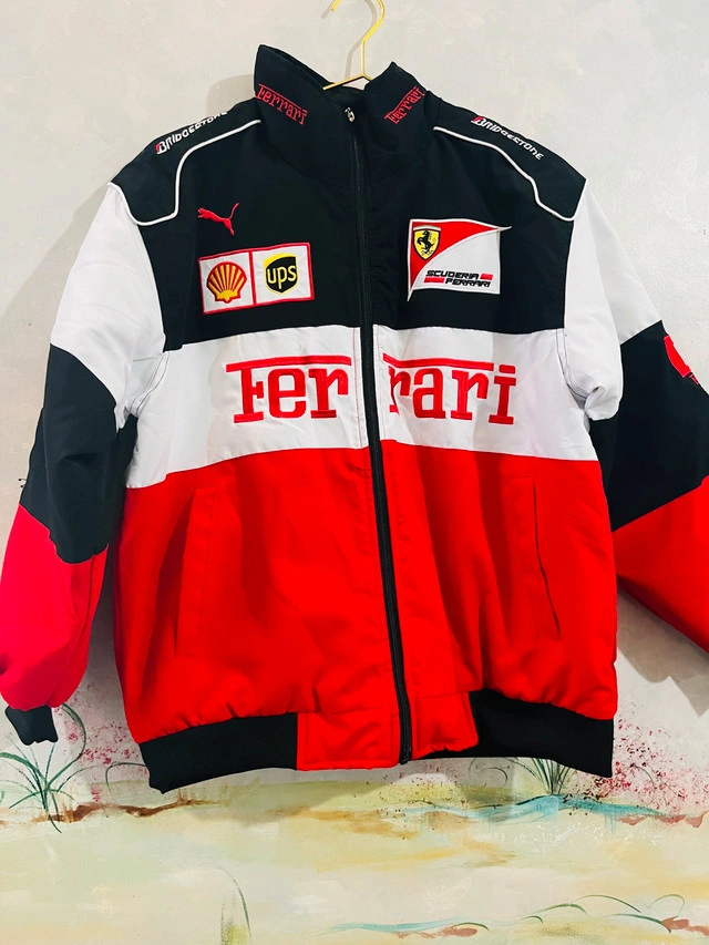 122Add a splash of Formula 1 style to your wardrobe with this Puma Ferrari Racing Jacket! This jacket is in great shape, showing only light signs of wear. The classic Ferrari colours and logos make it a standout piece for any motorsport enthusiast. Looking to add a bit of zippy style to your wardrobe? Available for pick up in Brampton near Sheridan College.